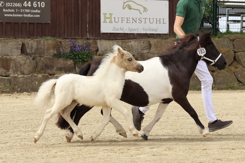 Am 08. Mai 2025 erblickte dieser außergewöhnlich hübsche Shetlandhengst das Licht der Welt. Levano von den Kirschblüten wird ab November 2025 ein liebevolles neues Zuhause suchen. Mit seiner besonderen Fellfarbe und seinem charmanten Wesen zieht er alle Blicke auf sich – ein echter Hingucker, der Herzen im Sturm erobert. Sein geschätztes Endmaß liegt bei 90–95 cm. Levano ist beim Rheinischen Pferdestammbuch e. V. eingetragen und erhält volle Papiere. Bereits jetzt zeigt er außergewöhnliche Qualität: • Fohlenschau Lindlar (28.06.2025): Goldprämie, Siegerfohlen & Einladung zum Fohlenchampionat • Fohlenchampionat Wickrath: Mit 101,5 Punkten zum Fohlenchampion der Shetlandponys gekürt Seine Abstammung spricht für sich: • Vater: Halstock Lion King • Mutter: Handsome v.d. Groenkamp (Kroon-Stute) Levano ist ein vielversprechendes Hengstfohlen – ideal sowohl für die Zucht, als auch als charismatisches Familienpony. Beim Auszug ist er selbstverständlich mehrfach entwurmt, kennt das Fohlen-ABC und war regelmäßig beim Schmied. Eine Lieferung in sein neues Zuhause ist im Umkreis von 250 km gegen Kostenübernahme gerne möglich. Weitere Informationen und Eindrücke finden Sie auf unserer Website: www.minishettysvondenkirschblueten.de
