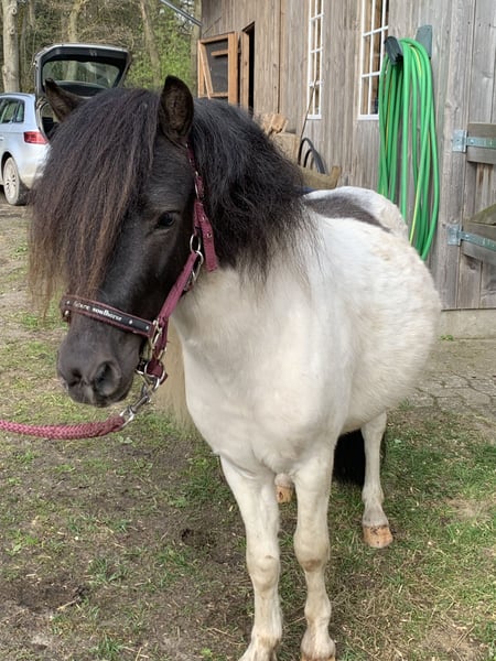 Zum Verkauf steht mein fast 3 jähriger Dt. Part-Bred Shetland Pony Hengst. Er ist ein sehr aufgeweckter Kerl allerdings noch etwas ängstlich in neuen und ungewohnten Situationen. Dabei aber nie böse! (Kein Treten, Beißen etc.) Er lässt sich brav anbinden und Putzen. Beim Hufschmied ist er ebenfalls regelmäßig. Spazieren gehen ist kein Problem und Anlongiert ist er auch. Das Verladen wird noch fleißig geübt, das ist noch nicht so seins. Momentan steht er zusammen mit 2 Wallachen auf einem Paddock und teilt sich Nachts die Box mit seinem Shetty Kumpel. • 3 Jahre alt • Stockmaß ca. 1m