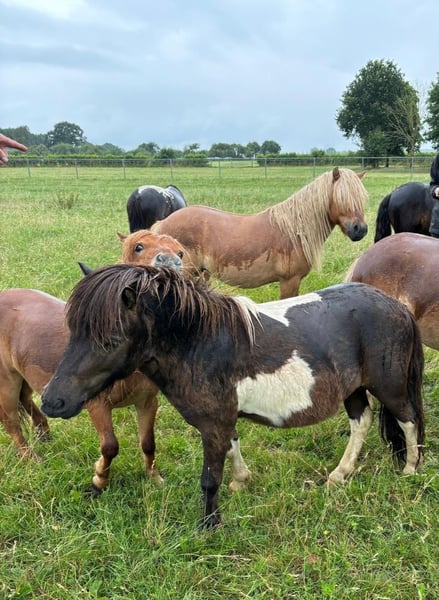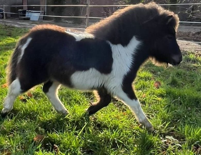 Shetlandpony Hengst – Championatsfohlen mit bester Aufzucht in Hengstgruppe Zum Verkauf steht ein vielversprechender Shetlandpony Hengst, geboren im Mai 2023 – ein echter Hingucker mit korrektem Exterieur und hervorragender Entwicklung. Dieser 2,5 jährige Hengst besticht durch sein wunderschönes Gesicht mit großem Auge, guter Oberlinie und Halsung. Bereits als Fohlen konnte er überzeugen: Silber prämiert bei der Fohlenschau in Sonsbeck und anschließend belegte er den 3. Platz beim Fohlenchampionat in Wickrath 2023, was sein Potenzial in Zucht und Show früh unter Beweis stellte. Seine Vollschwester stellte die Fohlenchampionatssiegerin beim Wickrather Championat im Jahr 2024 Aus einer Verb.Pr.St Die an ihren ersten Sohn schon definitiv ihre Coolness und den aufgeschlossenen Charakter vererben konnte. Vater der traumhaft schöne niederländisch gezogene Hengst Krim van de Zandkamp. Besonderheiten: Geboren: 5. Mai 2023 Stockmaß: ca. 93cm Aufzucht: 2 Jahre in einer Hengstherde mit ca. 30 Junghengsten in einem holländischen Naturschutzgebiet – robust, sozialisiert und artgerecht aufgewachsen Charakter & Entwicklung: Der junge Hengst ist ausgeglichen, aufmerksam und neugierig – mit dem typischen Shetty-Charme. Er kennt den täglichen Umgang, ist halfterführig und zeigt sich stets kooperativ. Durch die Herdenhaltung in der freien Natur bringt er eine hervorragende körperliche Entwicklung sowie ein stabiles Sozialverhalten mit. Eignung: Ob als zukünftiger Zuchthengst, für die Schau oder als Freizeitpony mit besonderer Ausstrahlung – dieser Junghengst bringt beste Voraussetzungen mit. Besichtigung nach Absprache möglich. Bei ernsthaftem Interesse freuen wir uns über eine Nachricht.