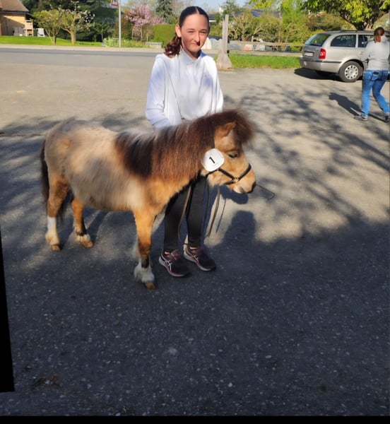Haribo vom Aeschlenberg est un étalon Shetland de 5 ans, bien typé et polyvalent. Il a été noté 8 / 8 / 8, avec une visite vétérinaire satisfaisante, notamment aucun problème de genoux. Étalon sain et fonctionnel Attelé, connaît le travail en traction Haribo vom Aeschlenberg ist ein 5jähriger ShetlandponyHengst, korrekt gebaut und vielseitig einsetzbar. Er wurde mit der Note 8 / 8 / 8 bewertet. Keine Knieprobleme, tierärztlich unauffällig. Gesunder, funktioneller Hengst Fahrpferd (eingefahren) Geeignet für Zucht und Freizeit/Fahren Guter Charakter, gut im Umgang Convient aussi bien pour lélevage que pour le loisir attelé Bon caractère, manipulé