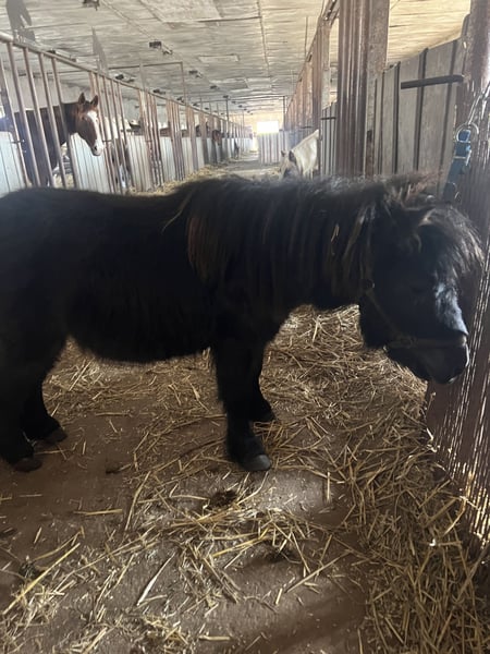 Honk (named Ostwind) is a very gentle and easygoing Shetland pony stallion. He is effortlessly groomed everywhere, willingly gives his hooves, and displays a friendly and cooperative demeanor in daily handling. We took him in from animal rescue, as he was previously not adequately cared for, and have since nurtured and rehabilitated him. Today, he presents himself as a wonderful pony with great potential. - Halter broke - Calm and easy to handle - People-oriented - Suitable for breeding or, after gelding, as an excellent children's pony The sale is due to age-related reasons as part of a reduction in a long-established horse herd. This is explicitly not a distressed sale.