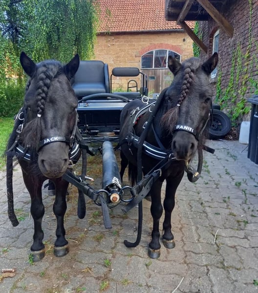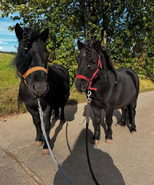 Two adorable Shetland pony stallions are searching together for their forever home ❤️ Hello dear pony enthusiasts, My two Shetland stallions (both 7 years old, approximately 39 inches tall) are looking for a wonderful, suitable home. I am only offering them together because they have known each other since foalhood and are simply inseparable. They get along perfectly but can be separated during walks or training if needed. ✨ What these two can do: - Both have experience driving a gig and pulling a carriage, but only with a halter – they are not yet fully driven and not accustomed to a bit. - They have full registration papers. - They are familiar with children riding them and behave very gently. - They are used to box and open stable management, having been kept both with my Tinker stallion and in a small gelding group. - They are also accustomed to being on pasture or paddock with mares, although a very secure fence is essential. - Walks and groundwork with other horses are no problem, as long as consistency is maintained. 💪 Health: One of them has a patellar luxation at the back, but this does not cause issues with regular training. 🐴 Ideal home: I wish for a loving home where they are challenged and can have fun. It would be especially wonderful if someone continued to develop their driving skills (gig, carriage, sulky – they have enjoyed this very much so far). Please no purely children's riding stables, but someone who appreciates them as a driving team or as leisure ponies with heart. These two are truly wonderful little guys who bring a smile to your face every day ❤️