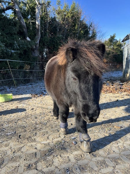 Since I am giving up my horsekeeping, this little magical mare is looking for a new home. Nia is 12 years old and stands approximately 95 cm tall. She is definitely not a children's pony, but she generally enjoys human company. It is very important to me that she is kept in a species-appropriate environment with other ponies, preferably in a herd on an open pasture, where she is not just a lawnmower or a companion pony and is recognized as an adult mare. In recent months, I have started working on the basics of ground work with her. When her motivation is high, she learns very quickly. She has probably been started under saddle, but I haven't tried that myself. During work, she puts in a lot of effort but is happy to question the task from time to time. In the paddock, she enjoys cuddling and also willingly accepts grooming. Unfortunately, she showed signs of sweet itch during the summer. However, with high-quality mineral feed and proper care, it was manageable. With appropriate mineralization and adjusted feeding, I believe her condition could improve significantly over the next few years. Her hooves were in poor condition when she arrived, but with the help of our hoof orthopedist, she is on a good path. Her hooves need to grow out, so she currently wears hoof boots at times. She could move to her new home from February. I am happy to include her equipment (blanket, hoof boots, halter, fly mask, and grooming tools). It is very important to me that she finds a loving home, so the well-being of the horse takes precedence over the price. If you’ve read this far and would like to get to know Nia, please feel free to contact me with a brief introduction of her potential new home, and we can arrange a viewing.
