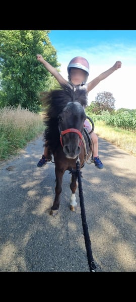 Jolie jument Shetland Pony Pour ma fiable et amicale jument Shetland Pony, Lolieka (née en 2004, environ 86 cm), je recherche un nouveau foyer aimant – de préférence pour une équipe parent-enfant, une petite famille équestre ou des personnes appréciant un Shetland expérimenté. Les petites écoles d’équitation sont également les bienvenues. Lolieka a été montée par des enfants et a également été conduite en attelage simple par ses anciens propriétaires (vidéo disponible). Elle a aussi fréquenté une école de poneys et connaît très bien la patience et la douceur dans la manipulation avec de jeunes enfants. Elle aime beaucoup être brossée, apprécie l’attention et travaille avec motivation. Chez moi, elle a fait du travail à pied, est fiable en tant que cheval de main aux côtés de mes petits chevaux, et m’a déjà accompagnée à vélo. Elle fait également partie de notre école de poneys et est conduite à la longe par des enfants. De plus, elle a participé à des promenades à poney sur des terrains inconnus – elle s’est montrée totalement détendue, patiente et sage. Hébergement & caractère Lolieka vit actuellement au pré avec abreuvoir automatique, est très sociable et s’entend bien avec d’autres chevaux et poneys. Elle a une position plutôt dominante, et chez moi, elle a choisi comme meilleur ami notre plus grand cheval. Je souhaite pour elle retrouver une place avec une compagnie de chevaux ou de poneys, car c’est là qu’elle se sent le mieux, de préférence en paddock. Nous lui proposons, ainsi qu’à son groupe, une mangeoire à foin 24h/24 avec filet. Elle s’y adapte très bien. En été, elle a été doucement grignotée et a également accepté sans problème un accès à l’herbe en permanence. Santé & comportement - régulièrement vaccinée et vermifugée (elle n’aime pas beaucoup le vermifuge, mais le tolère) - sage chez le maréchal-ferrant - monte facilement en van Grâce à son expérience, sa stabilité nerveuse et son caractère affectueux, Lolieka est idéale comme poney pour enfants ou comme partenaire fiable pour la famille. Pour tout intérêt sérieux, merci de me contacter par message privé. Je vous prie de ne pas poser de questions telles que « quand puis-je venir avec la remorque ». Une rencontre préalable est souhaitée expressément.