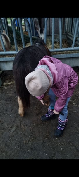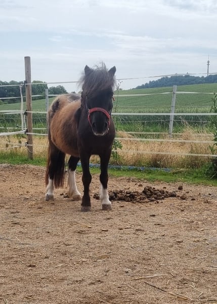 Liebevolle Shetlandpony-Stute Für meine zuverlässige und freundliche Shetlandpony-Stute Lolieka (Jahrgang 2004, ca. 86 cm) suche ich ein liebevolles neues Zuhause – gerne an ein Eltern-Kind-Team, eine kleine Pferdefamilie oder Menschen, die ein erfahrenes Shetty zu schätzen wissen. Gerne auch kleinere Schulbetriebe. Lolieka ist von Kindern geritten und war bei den Vorbesitzern auch einspännig gefahren (Video vorhanden). Sie lief außerdem in einer Ponyschule und kennt den geduldigen, ruhigen Umgang mit kleinen Kindern sehr gut. Sie wird ausgesprochen gerne geputzt, genießt Aufmerksamkeit und arbeitet motiviert mit. Bei mir hat sie Bodenarbeit gemacht, ist zuverlässig als Handpferd neben meinen Kleinpferden gelaufen und hat mich auch schon am Fahrrad begleitet. Ebenfalls ist sie ein Teil unserer Ponyschule und wird von Kindern geführt geritten. Außerdem war sie beim Ponyreiten auf fremdem Gelände dabei – dort zeigte sie sich absolut entspannt, geduldig und brav. Haltung & Charakter Lolieka lebt aktuell im Offenstall, ist sehr sozial und kommt mit anderen Pferden und Ponys gut zurecht. Sie ist eher ranghoch, bei mir hat sie sich unser größtes Pferde als besten Freund ausgesucht. Für sie wünsche ich mir unbedingt wieder einen Platz mit Pferde- oder Ponygesellschaft, da sie sich dort am wohlsten fühlt, am liebsten in einem Offenstall. Bei uns steht ihr und ihrer Herde eine 24h Heuraufe mit Netz zur Verfügung. Hiermit kommt sie sehr gut zurecht. Im Sommer wurde sie vorsichtig angegraßt und stand dann auch problemlos mit 24h Wiesenzugang. Gesundheit & Umgang regelmäßig geimpft und entwurmt (die Wurmpaste nimmt sie nicht gerne, lässt es sich aber machen) brav beim Hufschmied fährt problemlos Anhänger Durch ihre Erfahrung, Nervenstärke und ihren liebevollen Charakter eignet sich Lolieka hervorragend als Reitpony für Kinder oder als zuverlässige kleine Partnerin im Familienumfeld. Bei ernsthaftem Interesse bitte eine PN. Ich bitte von Anfragen wie "wann kann ich mit dem Anhänger kommen" abzusehen. Es ist ausdrücklich ein kennenlernen vorab gewünscht.