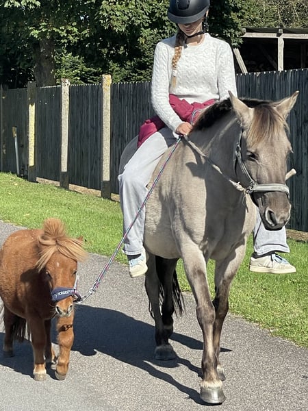Wir sind auf der Suche nach einem 5-Sterne-Zuhause für unsere geliebte Fuchsstute. Diese Entscheidung fällt uns nicht leicht, jedoch fehlt uns die Zeit für sie und zum Rumstehen ist sie einfach zu schade. Toffee ist eine am 03.04.2024 geborene Fuchsstute mit einer aktuellen Größe von ca. 75 cm. Sie ist eine liebe, kleine, neugierige Maus, die gerne mal ihren Besitzer testet. Sie kennt den täglichen Umgang und ist sehr menschenbezogen. Außerdem ist sie schmiede- und verladefromm, steht brav beim Putzen und liebt es, betüdelt zu werden. Wir suchen einen Menschen, der sie fördert. Ich könnte sie mir später auch gut als Kutschpony vorstellen. Sie wünscht sich ein Zuhause ohne Großpferde und nicht zu weit entfernt. Wir freuen uns über eine ausführliche Nachricht, wenn sie euch gefällt.