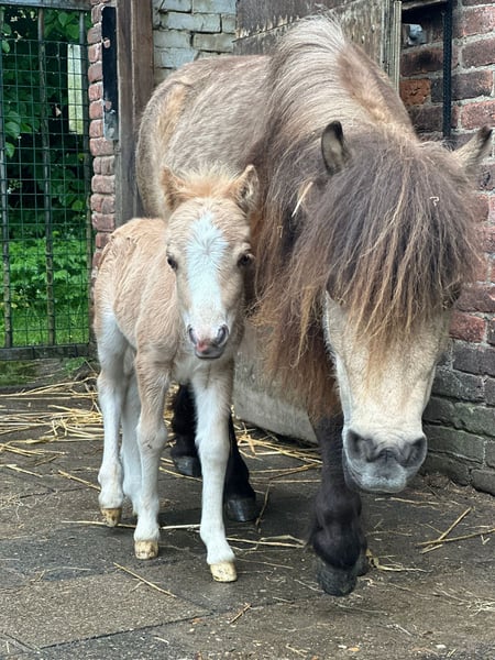 Loving them also means sometimes letting go, and since I can no longer offer them what they both truly deserve, I am looking for a new 💛 home for them. Before you read further... They do not need to leave quickly; they are not 🍎🥚 - going away. They will leave on the same day because they are housed together in one stable/paddock. It would be nice if they could go to the same home, but this is not a requirement. They are not for mowing the lawn. Sunny (the Sun of the Adventures) is a 1.5-year-old palomino NSPS mare bred by me. An incredibly curious, human-oriented, and sweet pony who enjoys walking and racing around the arena. I expect her to become a very willing and hardworking pony, which is why I am looking for someone who will actively work with her when the time comes. She is gentle with children and other animals but can sometimes find large horses a bit intimidating. She is used to farriers and has been present during dental care and clipping, reacting calmly. Vaccinations are up to date, and she is free of laminitis and eczema. Price: €850–€1000. Possibly together with my other pony for a 💛 home: https://www.ehorses.nl/mini-shetland-pony-merrie-5jaar-189-cm-bruin-fokpaard-recreatiepaard-gouderak/4687049.html for €1850.
