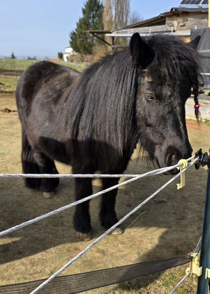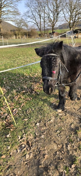 Unsere bildhübsche Shetty-Stute sucht ein liebevolles neues Zuhause. Sie kennt Reitergewicht und wurde im Gelände bereits mit einem Kind auf dem Rücken geführt – dabei zeigt sie sich stets unerschrocken und geht auch alleine problemlos ins Gelände. Da sie aufgrund ihres Alters noch kein erfahrenes Kinderpony ist, sollte sie weiterhin gefördert und altersgerecht ausgebildet werden. Sie ist sehr lernwillig und versteht Neues schnell. Die Kleine wird nur aus Zeitmangel abgegeben – ein Bestplatz ist uns besonders wichtig!