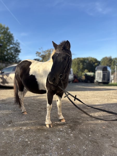 Unsere hübsche Shetlandpony-Stute Roxy (geb. 01.06.2020) sucht ein liebevolles neues Zuhause, in dem sie Kinderherzen glücklich machen darf. Sie ist eine etwa 110 cm große Scheckstute mit ganz viel Charme und einem freundlichen Wesen. Roxy ist ruhig, lieb und sehr neugierig – sie liebt den Kontakt zu Menschen, ist kinderlieb und gibt brav alle vier Hufe. Kinder akzeptiert sie problemlos auf ihrem Rücken und wurde bisher im Schritt und Trab geführt – das macht sie ganz brav mit. Sie kennt Offenstallhaltung, fühlt sich aber auch in der Box wohl. Hunde und auch große Trecker bringen sie nicht aus der Ruhe. Bisher war sie immer gesund und ist robust gehalten. 2024 hat sie ein wunderschönes Hengstfohlen zur Welt gebracht, sodass sie auch für die Zucht interessant sein kann. Wir wünschen uns für Roxy ein schönes Zuhause mit netten Menschen – gern mit Kindern –, wo sie weiter behutsam gefördert wird und viel Liebe erfährt.