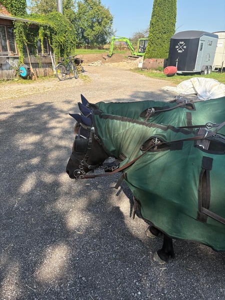 Rappe und Winterrappe - Shettystuten ggf in allerbeste Hände herzugeben. Glöckchen und Vroni ( eigentlich Olivia ) sind ca. 1,02m und ca. 1,03m groß, schwarz bzw. schwarzbraun, sind absolut sicher zweispännig gefahren! Beide sind auch einspännig vor der Kutsche sowohl auch vor dem Sulky gefahren, mit dem Sulky fahren müsste wieder aufgefrischt werden. Dies kam immer zu kurz. Seit Januar 2024 laufen sie vor der Kutsche und wurden mit unserer Fahrlehrerin am Stall ausgebildet. Glöckchen ist im April 2019 und Vroni im Mai 2020 geboren und sind auch schon beide geritten! Jedoch auch dies müsste wieder aufgefrischt werden, da es an Kindern mangelt die reiten können. Im therapeutischen Reiten wurden sie oft beim Führen von behinderten Kindern eingesetzt. Beide Ponies haben sehr gute Abstammungen, diese können auf Anfrage geschickt werden. Sie leben im Offenstall. Die Sommer Fliegedecken, haben wir nur benötigt weil wir in der Donaunähe mit extrem vielen Kribbel- und Hirschlausfliegen konfrontiert waren. Sie sind kerngesund, gepflegt, Zähne gemacht und regelmäßig entwurmt und vorne vom Hufschmied beschlagen. Hinten werden sie mit Hufschuhen gefahren. Die beiden sind beim Fahren sehr sicher und waren auch schon auf einem Kurs zum Kegelfahren. Eine weitere Ausbildung im Turniersport könnten wir uns vorstellen. Jedoch sind es keine Ponys für einen reinen Fahranfänger da auch sie eine souverände Handhabung und Unterstützung benötigen. Sie sind aber keine reinen Kinderponys - dafür sind sie zu schlau und nehmen Kinder nicht so richtig ernst. In Kombination mit Erwachsenen ist alles einwandfrei. Absolut sicher gefahren und straßen und geländesicher! Wir geben sie nur zusammen ab und nur in das perfekte Zuhause- am allerliebsten an Fahrer! Das war seit Januar 2024 3-4x die Woche ihre Aufgabe. Eine angepasste polnische Kutsche, ein sehr hochwertiger Glinkowski Sulky , ein hochwertiges Geschirr , ein sehr gut passender Sattel, Abschwitzdecken, Fliegenfahrdecken und vieles weitere an Zubehör kann gerne dazu erworben werden… Preis nicht im unteren Bereich und der Qualität entsprechend!