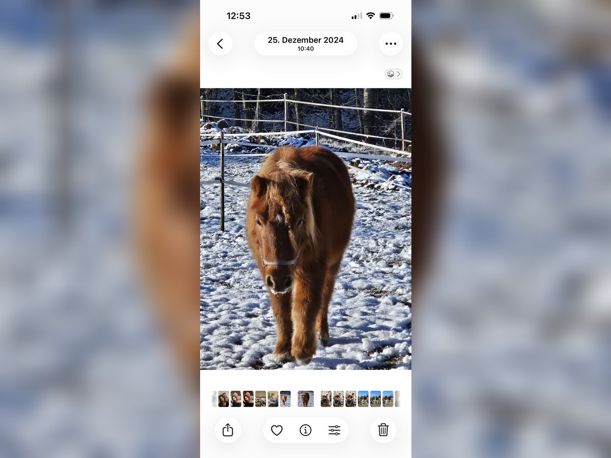 Schöne Shetty Stute, 8 jährig, Stm 1,08 cm, Fuchs abzugeben Habe sie vor ca 2 Jahren als Beisteller für meinen Wallach gekauft. Stella wurde von erfahrenen Kindern im Gelände geritten, wo sie sich sehr brav zeigte. Sie hört beim longieren auf Kommando. Sie ist absolut verkehrssicher, kennt Traktoren und zeigt sich beim Hufschmied sehr anständig. Suche für Stella ein schönes Zuhause mit ganztägigem Koppelgang oder Offenstall, wo sie mehr Aufmerksamkeit und Förderung bekommt. Sie liebt es geputzt zu werden, jedoch während ihrer Rosse im Umgang etwas zickig. Von daher nicht für Anfänger geeignet! Sie wurde regelmäßig geimpft und entwurmt Equidenpass vorhanden Platz vor Preis! Mehr Infos gerne auf Anfrage