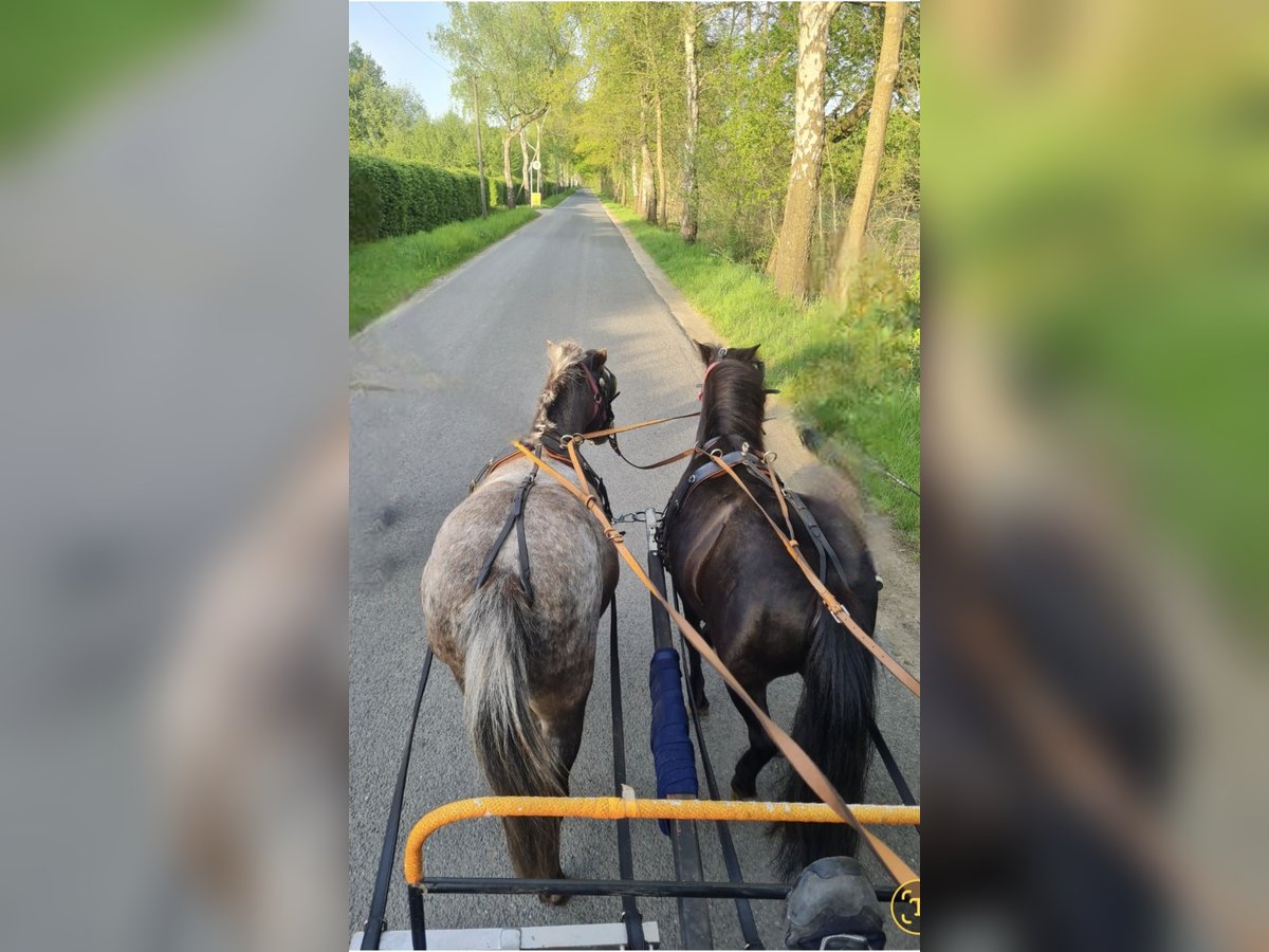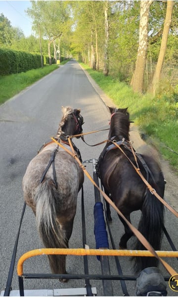 Ich verkaufe meine American Miniaturhorses. Sie sind 2 spännig gefahren. Die Graue ist auch schon alleine vor der Kutsche gewesen. Da sie erst letztes Jahr eingefahren wurden, sollten sie noch weiter gefördert werden. Sie sind kinderlieb und geführt geritten. Sind beides Stuten, sie haben ein Stockmaß von 1 Meter, 9 und 13 Jahre alt, niederländische Pässe. Die Ponys werden nur zusammen und in allerbeste Hände verkauft. Offenstall bevorzugt. PLATZ VOR PREIS. KEIN NOTVERKAUF. Sie dürfen nicht auf die Wiese und dürfen nur mit Heu gefüttert werden, da beide schon einmal eine Hufrehe hatten. Regelmäßig Impfungen, Wurmkuren und Zahnkontrollen sind für mich selbstverständlich. Ich würde auch die Kutsche und die passenden Geschirre, sowie Hufschuhe und weiteres Zubehör verkaufen. Bei Fragen oder ernsthaften Interesse gerne melden.