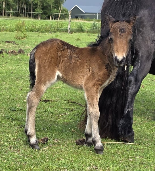 Op 7 juni 2025 kwam hij ter wereld: Vicq v. Paardenland, een vrolijk bruin hengstveulen met een open, nieuwsgierige blik. Inmiddels is Vicq bijna vijf maanden oud en groeit hij nog steeds op in een rustige, liefdevolle omgeving samen met zijn moeder. Vicq is niet alleen een plezier om naar te kijken, maar heeft ook een mooie afstamming meegekregen: • Vader: Rigolo v. Bromishet – 1e premie • Moeder: Kate v. Stal Wainum Wisholt – 1e premie • Moedersvader: Gresini v.d. Veldhoeve – 1e premie Vicq is klaar om te verhuizen naar een nieuw thuis waar hij verder mag opgroeien. We zoeken voor hem een plekje waar hij lekker pony mag zijn. Hij zou het geweldig doen als gezelschapspony, of voor iemand die een leuk jong maatje zoekt om later mee aan de slag te gaan. Heb jij interesse in Vicq of wil je meer weten? Neem gerust contact met ons op, we vertellen je graag meer! Kijk eens op onze website stalvanpaardenland.nl