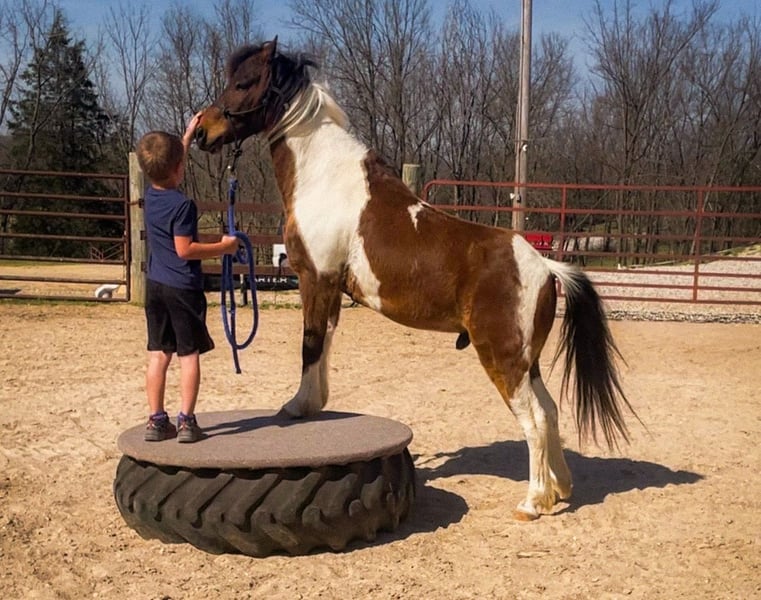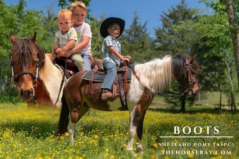 I proudly present Boots, a truly special little pony with a big personality and an even bigger heart. This 11.2hh Registered Bay Pinto Shetland gelding, located in Missouri, has been part of our family—especially for my six-year-old son, who has shared many adventures with him, as you can see in his full video. Despite his smaller size, he confidently keeps up with much larger horses, joining trail rides and even week-long camping trips. He’s steady, willing, and clearly enjoys being part of the group trail rides. Boots has participated in parades, strolled through town during Halloween trick-or-treating, and even gone swimming with us. He enjoys being out in the yard watching the kids play around him. Boots thrives in new environments and takes everything in stride, showing his adaptable, easygoing nature. Boots loves attention and has a wonderful personality. He’s eager to please and knows several fun and useful tricks, including bowing, sitting, and walking over to pick you up at a mounting block. He crosses water confidently, can drive from the ground, picking up his feet is a breeze, and he has given pony rides to other children. Handling Boots is a breeze—he’s easy to bathe, stands quietly for hoof trimming, and has never required shoes. He’s as low-maintenance as he is lovable. He spends time in the pasture with his mate, grazing on grass. He gets special treats from time to time. What truly sets Boots apart is his companionship. He’s like having a big dog around. He’s not just a pony—he’s part of the family. He’s entertaining and has been a joy for my son, making him a one-of-a-kind partner and friend. Boots is being offered for sale as my son transitions to a larger horse. He has played a big role in getting my son started in riding, and now he’s ready to take the next step with a bigger mount. * Boots will come with Registration papers, Bill of Sale, Vet inspection, Coggins, Saddle, and Tack.