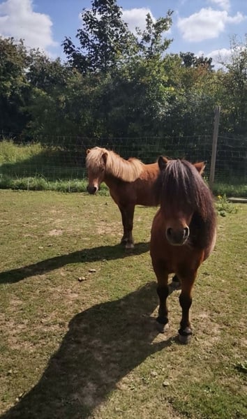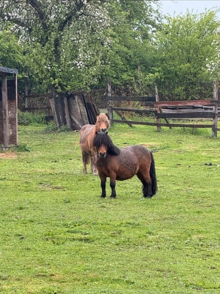 Verkaufe schweren Herzens hier mein Shetlandpony Karli mit komplettem Zubehör da ich ihm zeitlich einfach nichtmehr gerecht werde und er mir zum rumstehen viel zu schade ist. -super liebes Kinderpony -ca. 1m -Fuchs -Wallach -Rangniedrig -18 Jahre (05.03.2007) - vorbelastet auf Hufrehe Karli ist ein super liebes, neugieriges, verkuscheltes und aufgeschlossenes Pony. Er ist perfekt als Kinderpony geeignet da man mit ihm jeden Quatsch machen kann, er keine Unarten hat, mit Kindern super vorsichtig umgeht und ein totales Verlasspony ist. Im Gelände ist er unerschrocken weshalb spazieren gehen egal ob alleine oder mit anderen kein Problem ist. Er kann auch von kleinen Kinder problemlos gehändelt werde. Er ist auch mal vor der Kutsche gelaufen allerdings nicht bei uns. Da er rangniedrig ist lässt er sich von anderen Pferden vom Futter wegscheuchen und braucht deshalb einen Futterplatz bei dem er seine Ruhe hat. Er stand jetzt einige Monate rum und hat nicht viel gemacht da ich die Zeit nicht hatte. Er ist lieb beim Schmied. Er wird nur in gute Hände abgegeben da ich ihn vom Händler habe und gerne vermeiden würde das er dort wieder hinkommt. Aktuell steht er in einem Offenstall er kennt aber auch Boxenhaltung. Platz vor Preis! Bei Interesse oder weiteren Fragen gerne anschreiben.