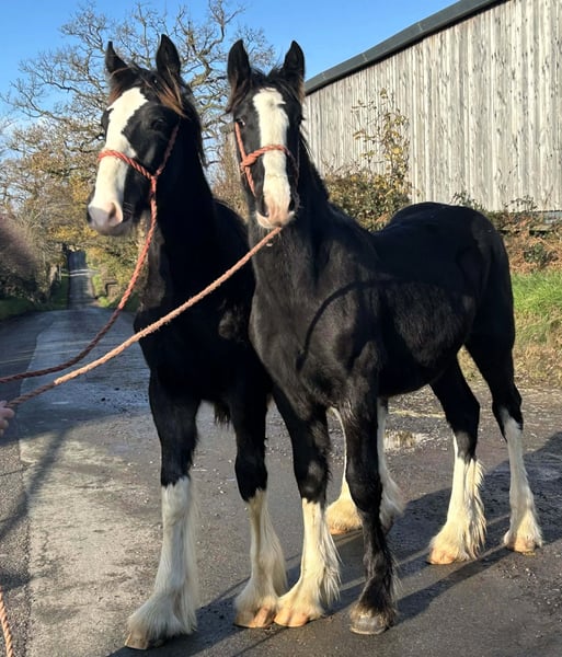 This Shire colt on the left in the photo is really well bred and very well marked and has a really nice friendly nature. Show quality. www.shiresandclydesdales.com Shire and Clydesdale horses from the home of champions.