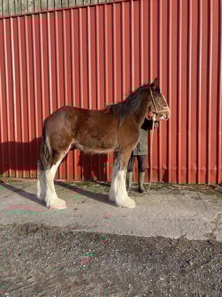 Mooie jaarling ruin beschikbaar. Volledig geregistreerd bij de Shire Horse Society. Zou een prachtig bereden of aangespannen paard zijn. Vriendelijke aard. Goede beweging. Zou niet misstaan in de showring. Voor meer informatie en het plannen van een bezichtiging, neem gerust contact met ons op.