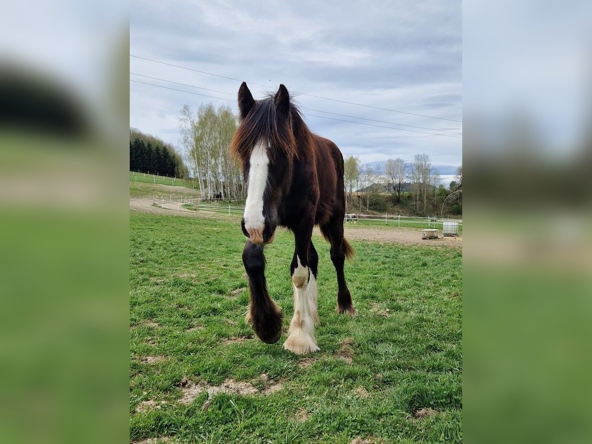 Thank you very much for your interest in our Shire Horse colt Fraggle. Shire Horse Fraggle was born in the summer of 2024 and is a beautiful young boy. He will remain dark in color. His dam Grace stands at 1.80 m, and his sire Duke measures 1.94 m at the withers. Therefore, it is very likely that Fraggle will also become a larger representative of his breed. Unfortunately, Fraggle has developed a swelling in his hocks, which has confirmed the suspicion of a chip. At the moment, Fraggle is sound and free of any complaints. After consultation with our veterinarians, it was decided not to carry out surgery for the time being. Due to this issue, Fraggle is now being offered below his actual value – in any case, a suitable home is more important than the price. Fraggle particularly impresses with his adorable appearance. At first, he is cautious with new people, but once he has gained trust, he enjoys grooming sessions and being petted. He leads well in a halter and is familiar with all the “standard activities” for a young horse (grooming area, hoof care, brushing, etc.). Currently, he is not too fond of hoof care – this depends a bit on his daily mood. We have also already done his first “training trailer rides,” introducing him calmly to the “monster transporter” as a movable feed box. Fraggle has grown up with his peers in a mixed herd on our spacious pastures, which we believe is especially important for the health and balance of our horses. Currently, Fraggle lives with his playmates in a young stallion/gelding rearing group in open stable/run-in housing. We would very much like to find him a new home with plenty of horse companionship. Fraggle is currently rather low-ranking and very easy-going in dealing with other horses, regardless of the age of the companion. Of course, he is microchipped, vaccinated, and regularly dewormed. If you are looking for a beautiful young Shire Horse to lovingly accompany as a partner by your side, we would be very happy to hear from you. Our horses are only given into the best hands and an age-appropriate home, which is why we take sufficient time for interested parties. It is also very important to us that the horse itself has a say – because the chemistry must be right for our animals too. Fraggle lives near Bad Füssing – we will be happy to provide the exact address when arranging a visit. Further impressions of our horses can also be found on our WhatsApp channel – if you are interested, we will gladly send you the link. In addition to Fraggle, we also offer other horses for sale, please feel free to contact us. In any case, the right home is more important than the price. We would therefore greatly appreciate a brief description of the new home in advance. We look forward to hearing from you.