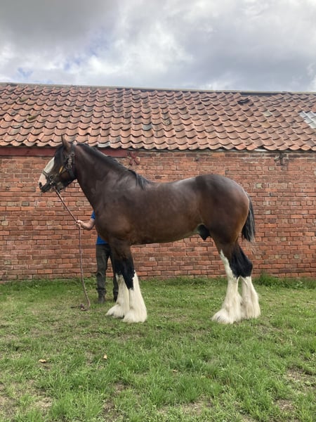 Excellent quality shire stallion. Breeds a very nice foal. Only for sale as related to all of our mares. Has been shown successfully. Very easy to use. Covers naturally and also collects well for artificial insemination. Contact for more info. Videos available.