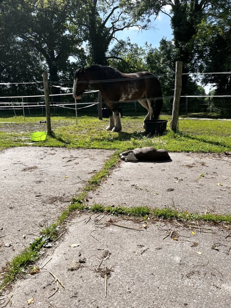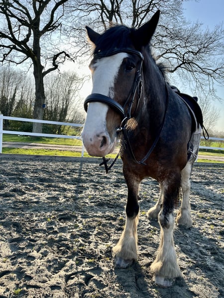 Unfortunately, I have to part with my Shire mare "Wolke" with a heavy heart, as I can no longer do her justice due to personal and family circumstances. "Wolke" impresses primarily with her consistently loving and honest nature. I purchased her directly from a breeder in the Netherlands when she was 3 years old. She was gently backed at age 6 and is open to all kinds of fun, always remaining calm and unshaken. We spent a lot of time in nature, during which she shows herself to be fearless and confident. She is a very curious and eager-to-learn mare. I am looking for a person or family who enjoys and is willing to continue her training and development, as unfortunately, this has been too limited so far. In the arena, she is easy to ride in walk and trot; she has only been in canter in the field so far. Wolke has no bad habits; if something seems new or strange to her, she simply stands quietly to observe the situation calmly. Wolke is familiar with dogs, cats, and children, and remains relaxed and friendly in these environments. She has some metabolic issues that manifest seasonally with mild signs of summer eczema or skin problems. With proper feeding, management, and care, these issues can be well controlled. She stays in her box at night and is turned out on pasture during the day. She is barefoot and loads easily alone. Due to lack of time and personal circumstances, Wolke has not been ridden in the past year, so any trial riding would need to be very limited, as she needs to rebuild her musculature. I wish for her a new, loving home where she can receive the time and attention she deserves! I can also very well imagine her as a broodmare or therapy horse. She has full papers from the Shire Horse Society in England. An absolute heart horse who would go through thick and thin with her human! This is not a distressed sale, so place takes precedence over price!