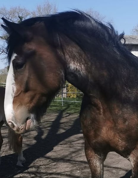 Unfortunately, I have to part with my Shire mare "Wolke" with a heavy heart, as I can no longer do her justice due to personal and family circumstances. "Wolke" impresses primarily with her consistently loving and honest nature. I purchased her directly from a breeder in the Netherlands when she was 3 years old. She was gently backed at age 6 and is open to all kinds of fun, always remaining calm and unshaken. We spent a lot of time in nature, during which she shows herself to be fearless and confident. She is a very curious and eager-to-learn mare. I am looking for a person or family who enjoys and is willing to continue her training and development, as unfortunately, this has been too limited so far. In the arena, she is easy to ride in walk and trot; she has only been in canter in the field so far. Wolke has no bad habits; if something seems new or strange to her, she simply stands quietly to observe the situation calmly. Wolke is familiar with dogs, cats, and children, and remains relaxed and friendly in these environments. She has some metabolic issues that manifest seasonally with mild signs of summer eczema or skin problems. With proper feeding, management, and care, these issues can be well controlled. She stays in her box at night and is turned out on pasture during the day. She is barefoot and loads easily alone. Due to lack of time and personal circumstances, Wolke has not been ridden in the past year, so any trial riding would need to be very limited, as she needs to rebuild her musculature. I wish for her a new, loving home where she can receive the time and attention she deserves! I can also very well imagine her as a broodmare or therapy horse. She has full papers from the Shire Horse Society in England. An absolute heart horse who would go through thick and thin with her human! This is not a distressed sale, so place takes precedence over price!