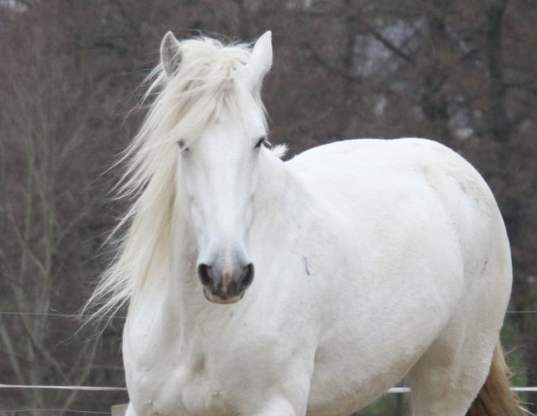 Nous vous remercions de l'intérêt que vous portez à notre jument Shire Horse Saffron. Saffron est née en 2013 et dispose de tous les papiers de la Shire Horse Society anglaise. Saffron possède toutes les qualités de la race Shire Horse. Du point de vue du caractère, c'est une jument proche de l'homme et prête à travailler, sur laquelle on peut compter. Saffron a été achetée par nous en tant que poulinière. Malheureusement, nous avons constaté dès son arrivée qu'elle avait de la gale qui, bien que bien traitée, était tenace. Comme il n'a pas encore été scientifiquement prouvé que la gale ou la prédisposition à la gale sont héréditaires, nous avons décidé de ne pas l'utiliser pour l'élevage. En tant qu'éleveurs, nous estimons qu'il est de notre responsabilité de ne pas prendre de risques pour l'animal. Au lieu de cela, Saffron est maintenant en pension chez nous et se révèle être un cheval de selle fiable, motivé et adorable. Il est certain qu'elle fera également un excellent cheval pour les sorties. Saffron se trouve dans un troupeau mixte et se montre sociable avec le troupeau. Elle est également habituée à la détention en box, bien qu'elle se sente nettement mieux dans un paddock ou une écurie ouverte. Elle est sociable et facile à vivre, mais insiste pour qu'on la félicite quand elle fait quelque chose de bien. En raison de sa gale, Saffron est cédée bien en dessous de sa valeur. Avec des soins appropriés (qui ne sont pas excessifs, des instructions précises seront bien sûr expliquées aux futurs propriétaires) et de l'exercice régulier, elle est vraiment facile à maîtriser. Nous avons décidé de chercher une place pour Saffron chez des personnes qui sont prêtes à faire quelques soins supplémentaires pour obtenir en contrepartie une jument Shire Horse vraiment formidable et reconnaissante. Le vétérinaire et la conduite de remorque ne posent aucun problème à Saffron. Actuellement, elle n'apprécie pas particulièrement le maréchal-ferrant, mais nous nous entraînons tous les jours à établir la confiance et Saffron fait de grands progrès. Bien entendu, elle est régulièrement vaccinée et vermifugée. Si vous êtes intéressé(e), n'hésitez pas à nous contacter pour faire connaissance. Nous sommes joignables via Whatsapp pour plus d'informations. Nos animaux ne sont remis qu'entre les meilleures mains et dans un foyer adapté à leur âge, c'est pourquoi il est important pour nous de consacrer suffisamment de temps aux personnes intéressées. Il est également important pour nous que le cheval participe à la décision, car l'alchimie doit également fonctionner pour nos animaux. Il est tout à fait possible de faire la connaissance de Saffron, sans engagement, lors d'une "journée ou d'un week-end Shire Horse" à la ferme, de manière à ce qu'un "repérage" mutuel puisse avoir lieu dans le calme et sans stress. Des possibilités d'hébergement se trouvent à proximité de notre ferme. Nos autres protégés se réjouissent toujours de recevoir de gentils visiteurs. Nous nous réjouissons de recevoir un message pour Saffron.