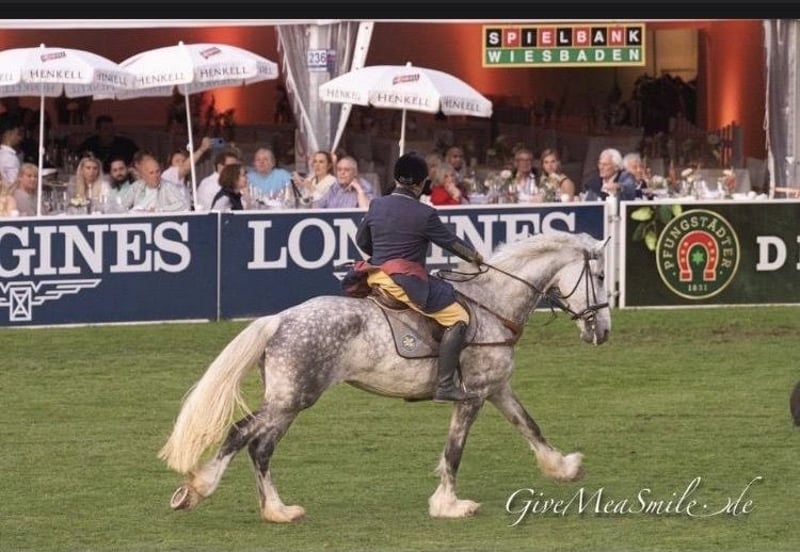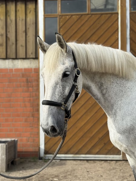Vendo splendida cavalla mista Shire Horse x purosangue – un vero colpo d'occhio! Questa imponente cavalla, nata nel 2012, affascina per la sua statura impressionante e il suo aspetto nobile. A ciò si aggiunge un carattere davvero fantastico, rendendola un vero tesoro nel rapporto quotidiano. Con un'altezza al garrese di 188 cm, è una presenza che non passa inosservata. La cavalla è di colore grigio perlato, conferendole un aspetto particolarmente elegante e raffinato. È esperta in attività di caccia, show jumping e si comporta in modo affidabile ed equilibrato in gruppo. È assolutamente affidabile in terreni vari, ma si presta anche bene al lavoro in indoor e in arena. Sia il dressage che il salto le piacciono molto. Grazie ai suoi movimenti espressivi e al passo comodo, è piacevole da cavalcare. Nonostante la sua grandezza e razza, possiede molto temperamento, che talvolta fa emergere il sangue puro. Può convivere con puledre, stalloni o in gruppi misti. Questa cavalla eccezionale rappresenta un’opportunità unica per gli appassionati di grandi e caratteriali cavalli. Per ulteriori informazioni e per una visita, sono a disposizione.