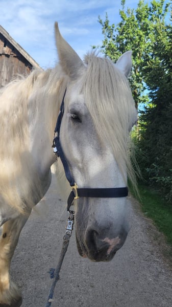 Enchanting Shire Mare for Sale – Perfect for Leisure Riders! This elegant grey mare was born in 2010 and impresses with her impressive size and friendly nature. Standing at 17.6 hands, she is a true eye-catcher and ideal for those seeking a reliable and calm horse for leisure riding. She is well-trained, easy to handle, and enjoys extensive trail rides in nature. Her gentle temperament makes her an ideal companion for riders of all experience levels. We look forward to hearing from you if you're interested!