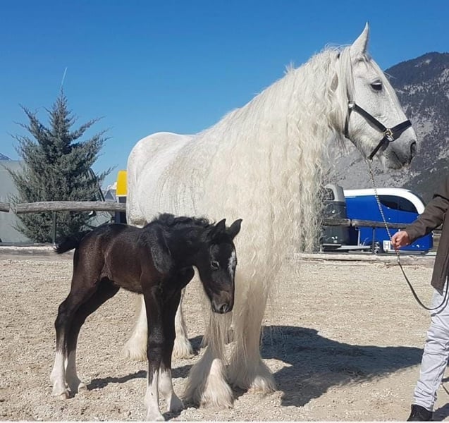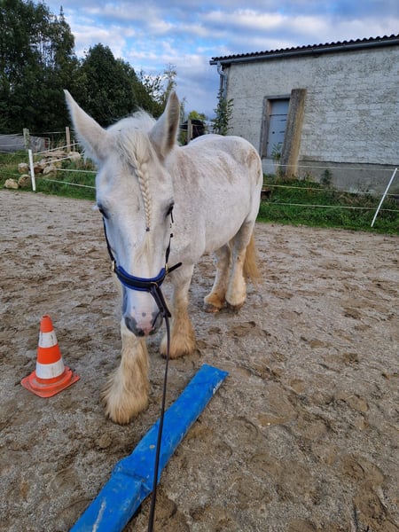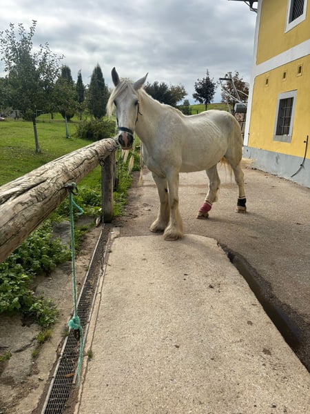 ✨ Beautiful Shire Mare – Loyal Companion for Leisure and Heart ✨ For sale is an impressive Shire Horse mare, born in 2009. This elegant grey mare impresses with her imposing height of 1.80 m, her calm demeanor, and her loving nature. She is the perfect leisure horse – reliable, people-oriented, and with a gentle, balanced temperament. Both under saddle and in daily handling, she is friendly, well-behaved, and attentive. She has been consistently well cared for, regularly vaccinated, dewormed, and veterinary checked. The farrier and trailer loading are no problem for her. Due to a wart conformation, which is easily manageable with proper care, she is being offered at a significantly reduced price – instead of €6,000, now €3,900. This minor issue does not affect her daily performance but requires some regular attention during grooming. She is ideally suited for experienced horsepeople seeking a gentle, honest, and impressive leisure, groundwork, or relaxed riding partner. With her charisma and character, she is a true heart horse that offers her trust and affection to her owner.