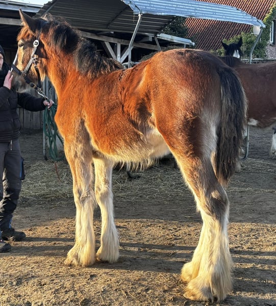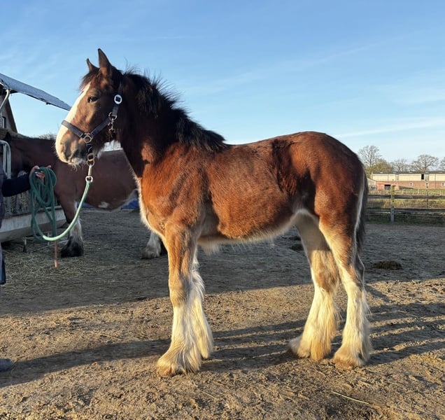 Unsere Tuilteans Briana ist nun alt genug und bereit, in ein neues Zuhause zu ziehen. Briana ist am 10.6.25 geboren, von Middle Meadow Morgan, aus Oakridge New Dawn. sie wird vermutlich eine Größe von knapp 1,80m erreichen, mit viel Knochen und Haar. Sie ist ein aufgewecktes, neugieriges Fohlen, als Tochter der Herdenchefin mit eigenem Kopf. Briana wächst im Herdenverband auf, kennt Offenstall und Box. Sie bekommt volles Zuchtpapier der SHS, welche derzeit noch in Arbeit sind. Mehr Infos gern auf Anfrage.