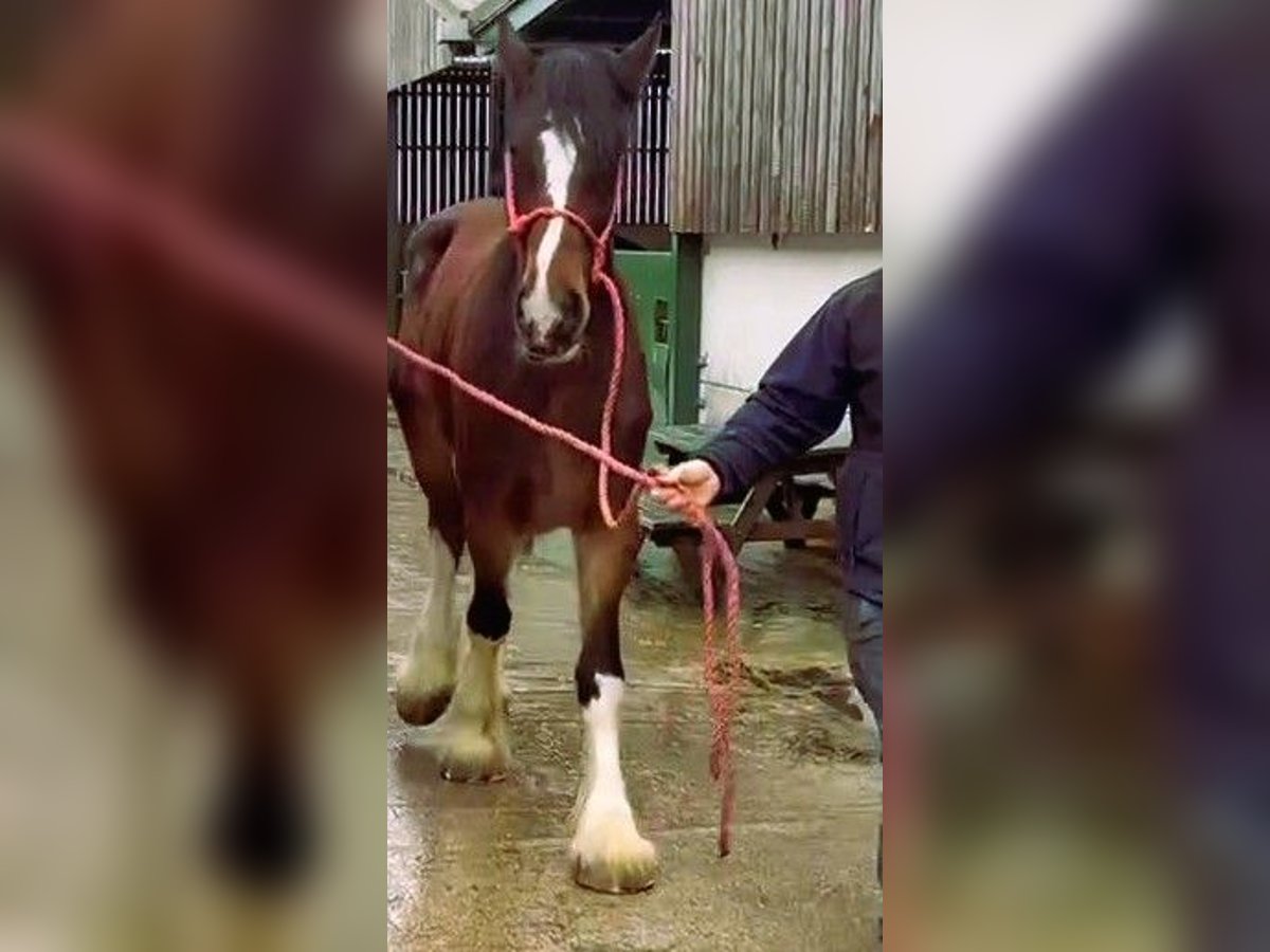 This attractive four year old mare is in foal for this time. A nice looking well marked mare with four white legs. In lovely condition. Fully registered with The Shire Horse Society UK sheila@shiresandclydesdales.com