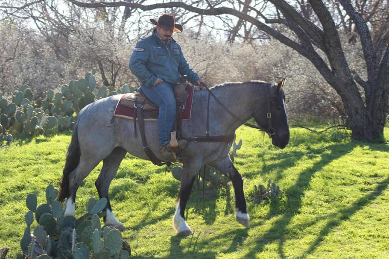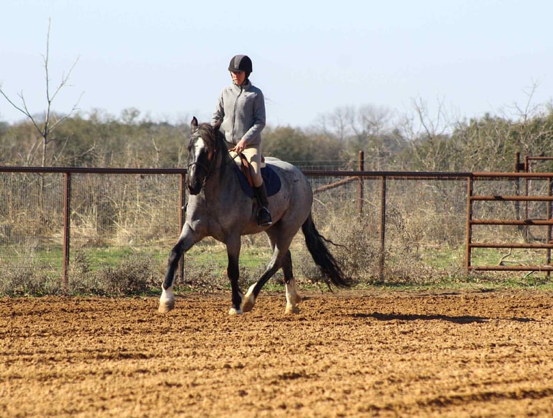ONLINE AUCTION Place your bids at www.PlatinumEquineAuction.com Starting Bid $3500 Auction ends November 23rd, 2025 Need a new saddle? Check out White Rock Saddles on our website or Facebook There are good mares, there are pretty mares… and then there’s Blue Bell. A 2020 model registered Shire Sport Horse, this true blue roan draft cross mare stands 15.2 hands of pure presence. She’s the kind that makes you stop mid-sentence and stare — deep blue coat, big bone, and that quiet confidence that says she’s done a few things in her life. For the past two years, Blue Bell has been the get-it-done kind — penning cattle, loading trucks, checking fences, and sorting pairs. She’s seen a full day’s work and still walks back to the trailer with her ears up. She’s got the grit of a ranch horse and the grace of a show horse, wrapped in one stunning package. Don’t box her in, though — Blue Bell rides both English and Western, and she’s already started over jumps like she’s been doing it her whole life. She moves free and fancy, soft in the bridle, with a lope you could ride into the sunset. She’s been hauled to rodeos, ranches, and even the Fort Worth Stockyards, where she handled the traffic, wagons, and chaos like she was born for it. On the trails, she’s the steady lead horse everyone follows — crossing water, bridges, and brush without ever second-guessing her rider. In the arena, she’s a looker — low-headed, smooth, and stylish. She’ll walk, trot, and lope correct circles, has a big stop, and carries herself with pride. Blue Bell is sweet to her core — the first to meet you at the gate and the last to complain. She hauls, ties, stands for the farrier, and gets along anywhere you put her. This mare has talent, temperament, and tons of try. She’s the kind you can rope on in the morning, take to town in the afternoon, and ride English on Sunday. Blue Bell — because not all blue roans are created equal. We are open to anyone interested in her to schedule a time to come see her or if you can’t make it schedule a FaceTime showing to see her. If you need help with transport don’t hesitate to ask we have a list of reputable haulers that can get her safely to your doorstep WORLD WIDE including, Alaska , Mexico, Hawaii, Canada and anywhere in between from Stephenville, TX. Contact Michelle with M $ Performance Horses 661-817-9120 with any questions. ONLINE AUCTION Place your bids at www.PlatinumEquineAuction.com Starting Bid $3500 Auction ends November 23rd, 2025 Need a new saddle? Check out White Rock Saddles on our website or Facebook