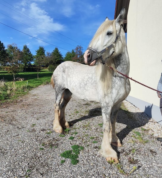 Verkaufe wunderschöne Shire Horse Stute – ideal für Freizeitaktivitäten Zum Verkauf steht eine beeindruckende Shire Horse Stute, geboren im Jahr 2018. Diese elegante Schimmelstute besticht durch ihr imposantes Stockmaß von 171 cm und ihre freundliche, ruhige Art. Sie ist bestens geeignet für den Freizeitbereich und begeistert durch ihre Gelassenheit und ihren Charme. Die Stute ist gesund, regelmäßig geimpft und gut gepflegt. Sie ist an Menschen gewöhnt, kennt den Umgang mit Hufschmied und Tierarzt und ist bereit für neue Abenteuer in Ihrer Freizeitgestaltung. Bei Interesse oder für weitere Informationen stehe ich Ihnen gerne zur Verfügung. Eine Besichtigung und Proberitte sind nach Vereinbarung möglich. Kontaktieren Sie mich gern, um diese besondere Shire Horse Stute kennenzulernen!