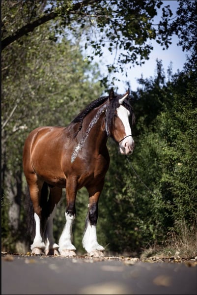 Here is my 9-year-old Shire Horse gelding, Marlow, for sale. Registered Name: Emma's Marlow. Age: Born on April 11, 2016. 9 years old. Height: Approximately 16.2 hh. Ridden in all three gaits for leisure riding. Handles well in the arena, in the indoor riding hall, and in the field. Rides comfortably both in a group and alone in the terrain. A big cuddle bug who is always very calm, sensible, and easy to handle. Works on the longe and double longe and is familiar with ground work. Regularly vaccinated, dewormed, with biannual osteopathic check-ups, annual dental care, and routine saddle checks. Knows herds both consisting solely of geldings and mixed herds with mares and geldings. Good with the farrier, veterinarian, and trailer loading. Kept in an open stable system and only knows this type of housing. Sold with all accessories (saddle, girth, lunging equipment, bridle, halter, grooming tools, cooler, etc.). Only sold in an open stable system. No installment payments! Price is not negotiable! To prevent tourism riding, a trial ride fee of €50 is charged. This amount will be deducted from the purchase price.