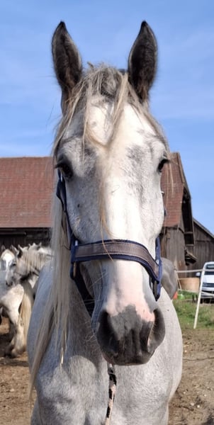 Grazie per l'interesse dimostrato nei confronti del nostro castrone di Shire Thor. Il castrone di Shire Thor è nato nell'estate del 2021 ed è un giovane curioso e coraggioso. Deriva dalla nostra stessa selezione e fin dal primo istante è sotto la nostra cura. In base al suo sviluppo finora, Thor promette di diventare un rappresentante sportivo della razza Shire. Inoltre, si distingue per un bellissimo mantello. Dal punto di vista caratteriale, Thor è molto aperto verso nuove attività, trova tutto ciò che non conosce estremamente interessante ed è sempre il primo nel gruppo a affrontare senza paura le novità. Nei confronti dell'uomo è molto affettuoso, semplice e curioso. È gestibile con la cavezza e conosce tutte le "attività standard" di un puledro (postazione di pulizia, cura degli zoccoli, spazzolatura, ecc.). Abbiamo già effettuato con lui anche i primi "giri in carrozza", in cui sale come un campione e viaggia perfettamente anche da solo nel carro. L'unica cosa che attualmente non gli piace è la cura degli zoccoli, per la quale stiamo facendo esercizi intensivi. Thor è cresciuto insieme ai suoi simili in un branco misto sui nostri ampi pascoli. Ora vive in un gruppo misto (stalla a cielo aperto). Desideriamo per lui una nuova casa con molta compagnia di cavalli. Naturalmente, Thor è microchippato, vaccinato e regolarmente sverminato. Se cercate un Shire coraggioso con un carattere dolce e affettuoso, che desidera accompagnarvi amorevolmente come partner nella vita, non esitate a contattarci. I nostri animali vengono affidati solo a persone di fiducia e in una casa adeguata alla loro età, quindi ci prendiamo il tempo necessario per conoscere bene gli interessati. È anche importante che il cavallo partecipi alla decisione, perché anche per i nostri animali deve esserci chimica. Sarà molto gradito un incontro senza impegno con Thor, ad esempio una "giornata o un fine settimana dedicato agli Shire" presso la nostra fattoria, così da poterci conoscere in modo tranquillo e senza stress. Thor vive vicino a Ried im Innkreis, l'indirizzo preciso verrà fornito con la prenotazione dell'appuntamento. Pernottamenti con ottima cucina si trovano a pochi passi dalla nostra fattoria. Nelle vicinanze ci sono anche alcune belle terme, quindi una piccola vacanza nella nostra zona vale sicuramente la pena. Anche chi non è cavaliere è molto benvenuto da noi. Offriamo inoltre uscite guidate e passeggiate con i nostri gentili giganti in paesaggi meravigliosi. Anche i cavalieri meno esperti possono accompagnarci, in questo caso il cavallo viene condotto a terra. Sono disponibili anche buoni regalo per queste attività, che hanno già regalato molte piacevoli sorprese, anche per compleanni. Altre immagini dei nostri cavalli sono disponibili anche sul nostro canale WhatsApp. Se interessati, saremo lieti di inviarti il link. Attendiamo con piacere il tuo contatto.