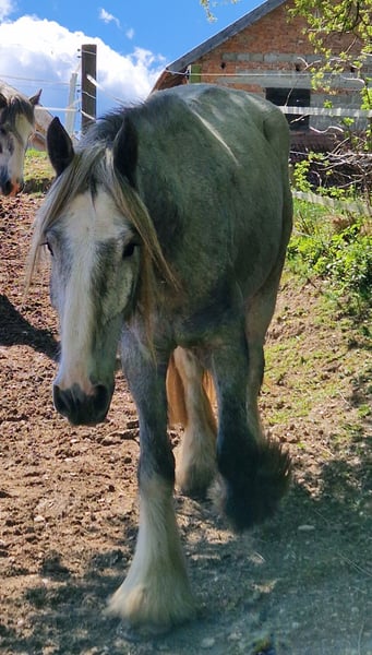 Thank you for your interest in our Shire Horse gelding Thor. Shire Horse gelding Thor was born in the summer of 2021 and is a curious, brave young man. He comes from our own breeding and has been in our care from the very first moment. Due to his development so far, Thor promises to be a sporty representative of the Shire Horse breed. Additionally, he impresses with his beautiful coloring. In terms of character, Thor is absolutely open to new activities; he finds everything he doesn't know incredibly exciting and is always the first in the group to face new things fearlessly. He is very affectionate towards humans, uncomplicated, and curious. He is halter-trained and knows all the "standard activities" of a young horse (grooming area, hoof care, grooming, etc.). We have also completed the first "trailer training rides" with him; he loads into the trailer like a champion and travels perfectly alone in the trailer. He currently finds hoof care absolutely annoying, and we are intensively working with him on this. Thor has grown up with his peers in a mixed herd on our spacious pastures. He now lives in a mixed herd (open stable). We are looking for a new home for him with plenty of equine companionship. Of course, Thor is chipped, vaccinated, and regularly dewormed. Anyone looking for a brave Shire Horse with a gentle and human-oriented character, which they would like to lovingly accompany as a partner in life, is very welcome to contact us. We only place our animals in the best hands and a suitable home, so it is important to us to take enough time for interested parties. It is also important to us that the horse has a say in the decision, as the chemistry must also be right for our animals. We would be happy to arrange a non-binding introduction to Thor as a "Shire Horse Day or Weekend" at our farm, so that a mutual "getting to know each other" can take place in a calm and stress-free manner. Thor lives near Bad Füssing, and we will gladly send the exact address upon scheduling an appointment. There are overnight accommodations with great food within walking distance of our farm. Additionally, there are several beautiful thermal baths in the vicinity, making a little vacation in our area definitely worthwhile. Non-riders are also very welcome here. We also offer guided rides and hikes with our gentle giants in beautiful nature. Less experienced riders are welcome to join; in this case, the horse will be led from the ground. Gift vouchers for this are also available and have already provided many lovely (birthday) surprises. Further impressions of our horses can also be found on our WhatsApp channel. If interested, we would be happy to send the link. We look forward to your message.