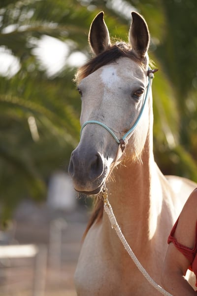 Our hardworking, butter-soft Speed Racker mare, a four-gaited horse with a clear tölt, in stunning BUCKSKIN coat. Self-cleaning coat😉 beautiful, athletic, fast, and secure. Healthy, no allergies except for a past sensitivity to grass mites, which is easily treated. We have already ridden her in Germany, Mallorca, the USA, and the Pyrenees in France. - Age: 10 years - Height: 15.9 hh - Gaits: four-gaited, no pace - Farrier- and load-safe, excellent hooves, barefoot since arriving in Europe. Registered with RHBAA and SHOBA, and listed in the pre-registration of the Rhineland Breeding Association. She is familiar with dogs and water, traffic-safe, and characterized by sure-footedness, courage, and a close bond with people. Walking speed: 7.2 km/h (she can naturally go slower) or can accompany other horses at their pace. Unfortunately, she cannot easily tölt at very high speeds, but she enjoys galloping very much. For trail riding, a steady pace is preferable over speed. Always close to her rider. She has never had issues with the saddle or pressure from the girth, despite her sensitivity. Now she is looking for her joyful "forever human" to explore the world together. Currently in training. Trial ride: €30 More information: Facebook Thomas: https://bit.ly/ts2269 Facebook Iren: https://bit.ly/ir0873 Gwen – Finos & Friends Tournament, first time in the arena: https://rebrand.ly/Gwen1 Gwen – tölt test, 2nd place: https://rebrand.ly/Gwen1a Gwen and her video presentation for the US SHOBA Association: https://rebrand.ly/Gwen1b Gwen and Thomas: https://rebrand.ly/Gwen1c