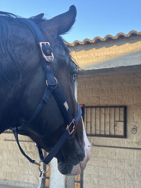 For sale: a young horse with an excellent temperament, very gentle, easy to handle, and cooperative. Started under saddle, worked freely on the lunge line, with no fears or vices. Has never shown any issues during desensitization or daily handling. Very respectful and comfortable to work with. Beginning to go out alone or with other horses in the field. 🔹 Age: 3 years and 8 months 🔹 Coat: dark bay 🔹 Distinctive features: blaze, roan, and blue eye 🔹 Temperament: calm, noble, and not easily spooked 🔹 Handling: easy in the stable, clean, and well-trained This horse is still growing and is expected to develop significantly further. He comes from a very good pedigree: • Mother: Perla • Father: Black • Grandparents: chestnuts, blacks, albinos, and cremellos • Ancestors with results in dressage, working equitation, show jumping, and carriage driving, both nationally and internationally A very versatile horse, ideal for various sports or recreational disciplines. ✔️ Owned by a single owner since 5 months of age ✔️ Vaccinations and health checks up to date ✔️ Work always appropriate for his age ✔️ Great future potential More information available privately. Videos and photos available for serious inquiries.