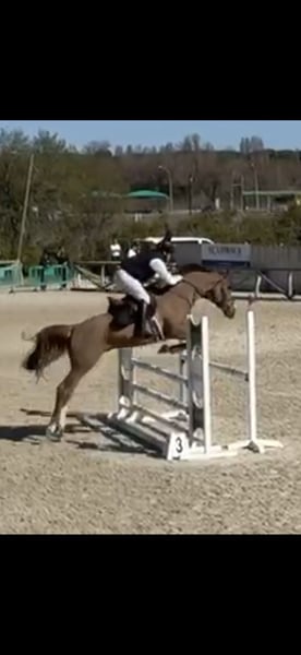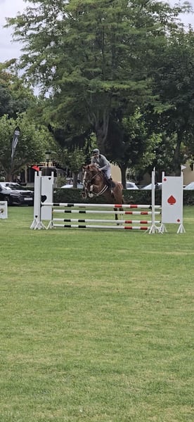 5-year-old CDE, with a very good character, always willing, healthy and well-built. Very good head, currently competing in meter tests and some 1.10m. Used to everything, traveling, countryside, etc. Can be tried without obligation, in Burgos (northern Spain).