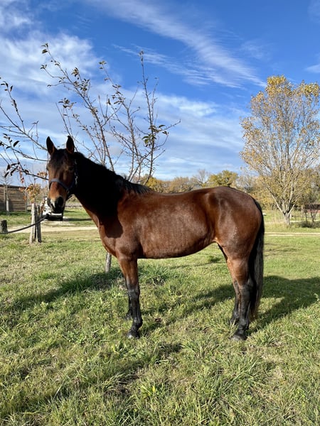 À vendre – Jument ONC espagnole, 15 ans, Baie, environ 1m60 idéale loisir, douce et proche de l’humain Elle a passé une grande partie de sa vie en élevage et a pouliné régulièrement. Depuis un mois, elle reprend doucement le travail, en longe et monté tranquillement, et montre une très bonne volonté. (redébourrage) ✔️ Caractère Très douce, Respectueuse à pied Bonne énergie sans excès à pied, reste tres verte dans le travail monté, qui se regleras au fur et à mesure du travail efffectué. Apprend vite et aime faire plaisir ✔️ Au travail Reprise progressive depuis 1 mois : pas/trot/ galop Trés bonne bases en travail a pied (longe, longue renes, un peu de liberté) Le travail monté est en cours d'évolution À l’écoute, volontaire Idéale pour une personne qui veut construire sereinement une relation Préférable pour du loisir, balade, léger travail en carrière ✔️ Santé & mode de vie Jamais malade, suit bien ses soins Pieds ferrée des antérieurs Dentiste / ostéo / vaccins à jour Vit au pré ✔️ Idéale pour Cavalier calme et patient Reprise en douceur, relationnel, loisirs Personne cherchant une jument pour évoluer sans pression et établir une vrai connexion de confiance 📍 Localisation : Drôme 💰 Prix : 4000 📞 Contact : 06 89 40 65 28
