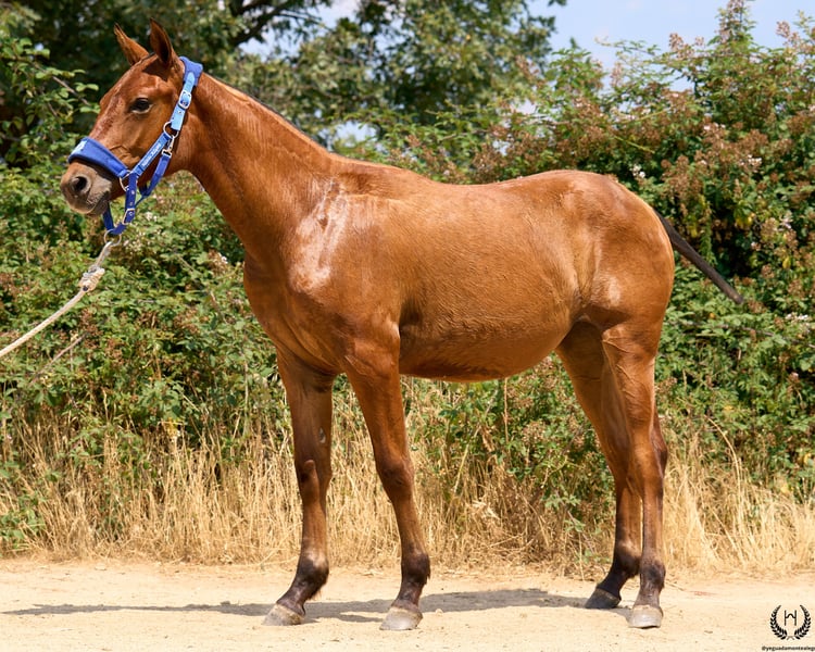 🐴 Retama is a spectacular CDE filly, with a dark bay coat and black points, born on 10 January 2025. Very American type: powerful, muscular hindquarters, short back, cylindrical body, fine limbs and a triangular head with a strong jaw. 💪 Compact, athletic and perfectly built for ranch work, cattle handling, long mountain rides or endless trail rides. ♀️ Dam: CB SOME LIKE IT HOT (Appaloosa APHC) – 100% functional working bloodline. Daughter of the legendary BOGIEPLATED JAC, one of the best functional Appaloosas in Europe, with an outstanding record: 🏆 French Reining Champion (2004, 2005, 2008, 2010) 🏆 European Maturity Reining Champion (2008) 🏆 French GET OF SIRE Champion (2010) 🏅 International ApHC USA Top Ten (multiple years) 🥇 Gold and silver medals at European and World Championships 📜 ROM Junior Reining and Halter ♂️ Sire: Gallo-Spirit CDE, our recognised stallion, adding beauty, nobility, refinement and great rideability. 📄 Purchase options: 1️⃣ Sale with official ANCADES breeding certificate (registration by the buyer). 2️⃣ Sale with official ANCADES papers. 🩺 Health guaranteed: Any veterinary examination accepted. 🚛 National and international transport with specialised companies. 📲 Contact: 🟢 WhatsApp: +34 639 522 420 🔴 Instagram: @yeguadamontealegre 📸 @almarevisual