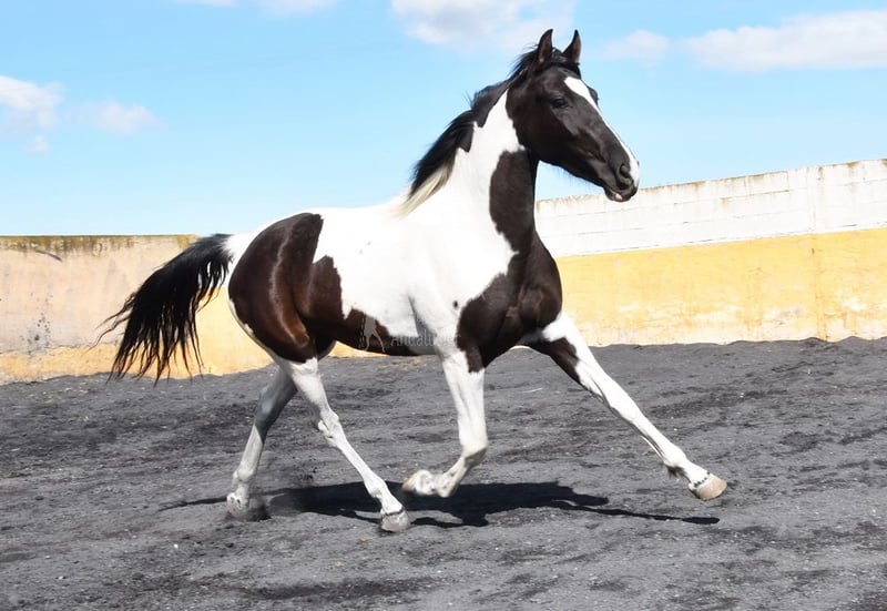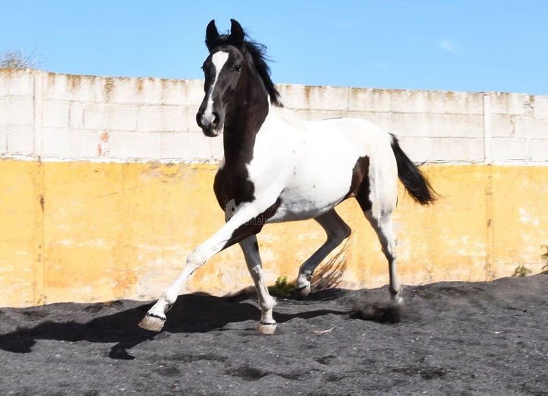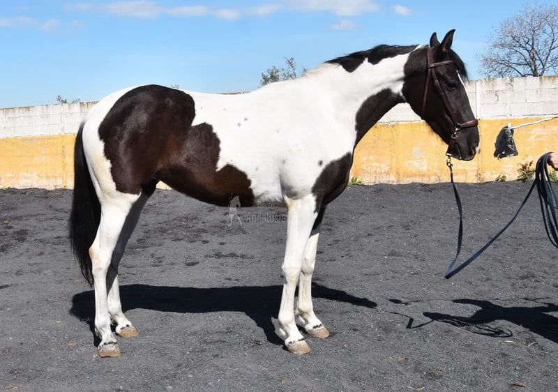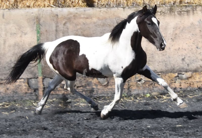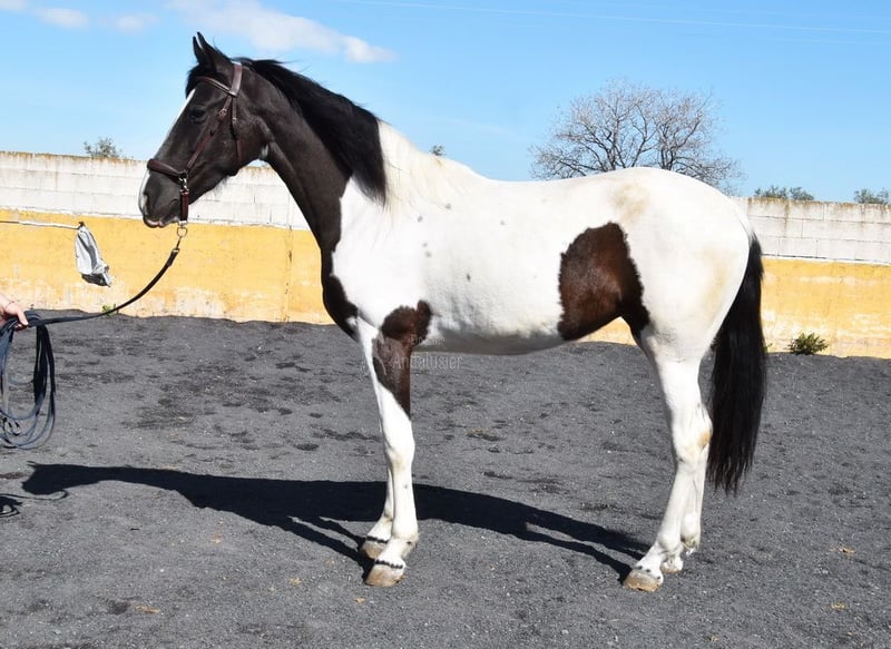 carácter amable, trabajado a la cuerda con silla y brida, listo para ser montado, color especial, buenos movimientos, linaje: los Retamales, Ferrer Rovira, Miura www.elegante-andalusier.com
