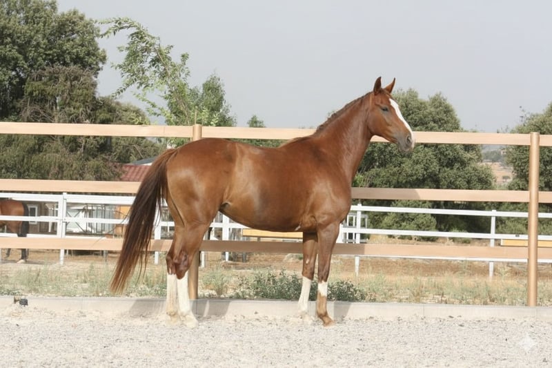 Montada y con buen nivel de trabajo. Alazana intensa con cuatro calzados blancos, compacta y bien proporcionada, dorso sólido y grupa potente. Movimiento amplio, elástico y con buena proyección. Carácter noble y fácil en el manejo, apta para doma clásica, completo o salto ligero. Excelente futuro proyecto de cría para una línea funcional y atlética.