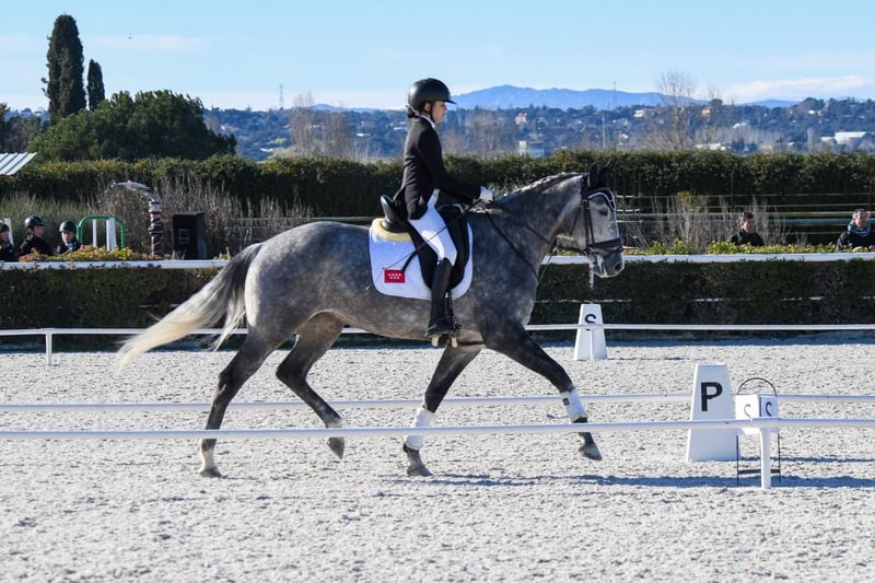 Spanish Sporthorse mare for sale, 7 years old. Excellent gaits and temperament, eager to move forward, and very energetic. Homebred. Gesto CEN (PRE) x Milanda (Oldenburg). She is 1.68m tall. Gray coat, 7 years old (born 2018). She has Level 4, Junior level (shoulders in, leg-yielding, halfpass at both trot and canter, pirouettes, and flying changes). For more information, please contact us via WhatsApp at +34 664 807 693.