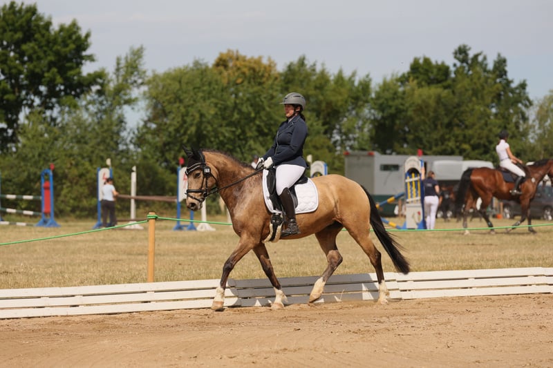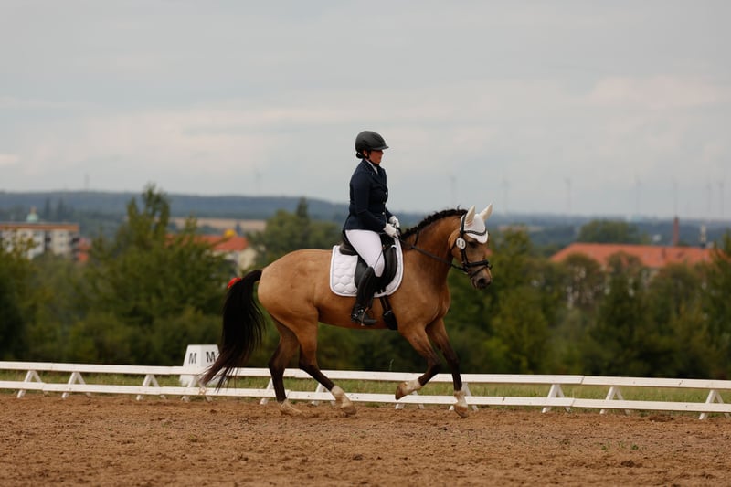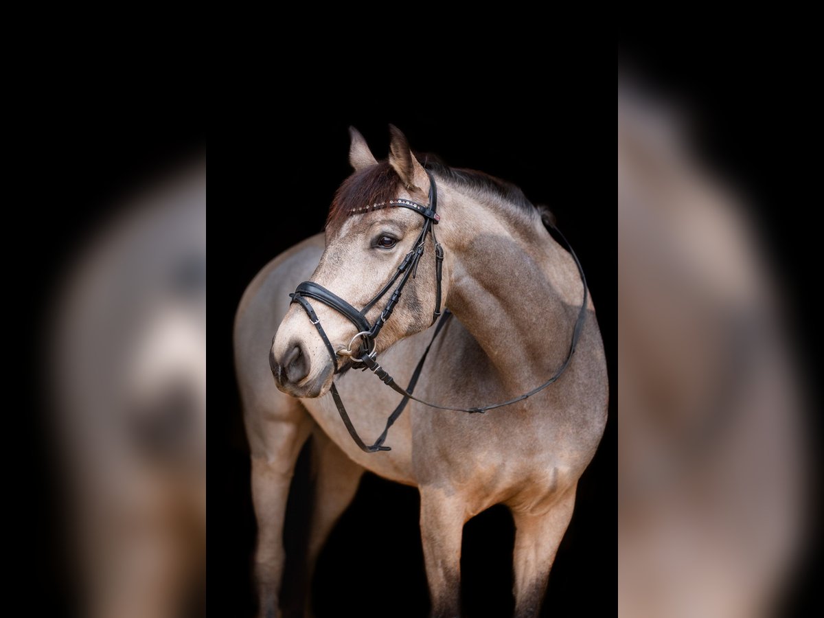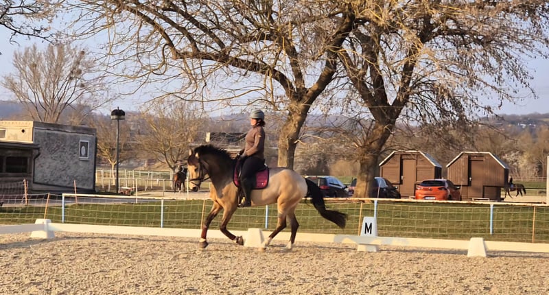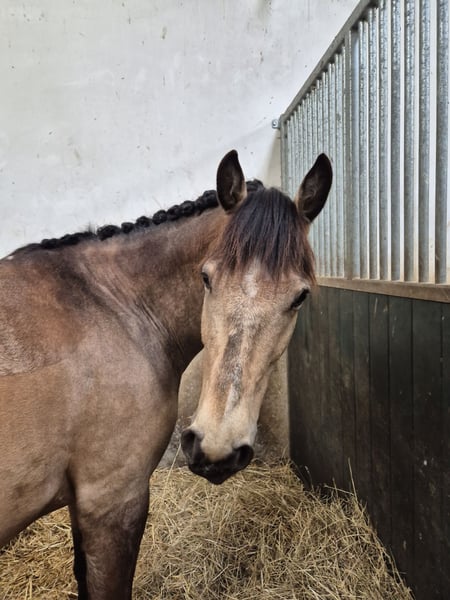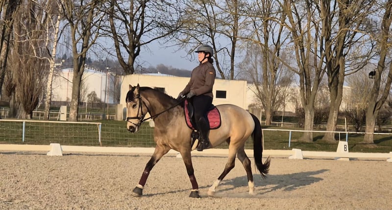 Elegantes spanisches Sportpferd sucht neuen Besitzer Diese wunderschöne Stute wurde im Jahr 2017 geboren und besticht durch ihre beeindruckende Erscheinung und ihr vielversprechendes Talent im Dressursport. Mit ihrem edlen Buckskin-Fell und einer Größe von 158 cm ist sie sowohl optisch als auch vom Format her perfekt für ambitionierte Reiterinnen und Reiter, die Wert auf Qualität und Ausdruck legen. Das Pferd ist ein typisches spanisches Sportpferd, das durch seine elegante Linienführung, seine aufmerksame und lernwillige Art. Sie ist gut geritten, zeigt eine harmonische Grundausbildung und bringt die nötige Feinfühligkeit für anspruchsvolle Dressurlektionen mit. Diese Stute ist ideal für Reiter, die eine zuverlässige Partnerin für den Turnierreitsport suchen. Aufgrund ihrer freundlichen und aufgeschlossenen Art lässt sie sich angenehm im Umgang führen und zeigt sich stets motiviert und lernbereit. Aufgrund von 2 Befunden in der Hinterhand ist sie nur für den Dressursport geeignet, schränken sie aber nicht ein. Röntgenbilder können auf Wunsch, bei ernsthaften Interesse verschickt werden. Ich könnte sie mir gut als Mutter-Tochter gespann vorstellen. Natürlich ist sie Schmiede und Verladefromm.