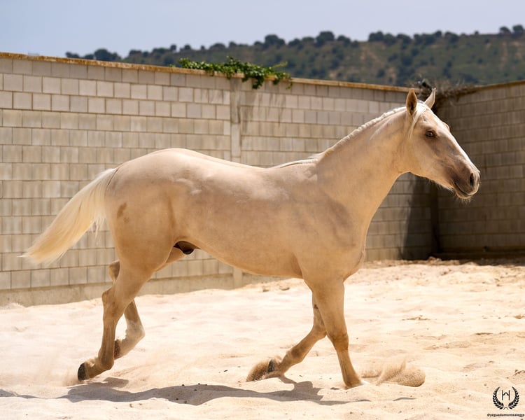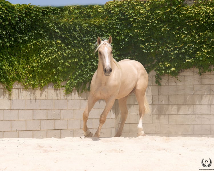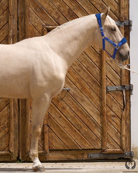 🌞 Amazónico Monte Alegre — Elegance, Genetics and Functionality in One Horse 🌞 Looking for a horse that has it all? 💫 Amazónico Monte Alegre is the perfect fusion of beauty, athletic character and elite genetics. 🐎 📅 14/04/2023 – 1.68 m – Gelding 📘 CDE (ANCADES) ▫️ Training level: Well-handled young horse, working on the lunge in all three gaits and on both reins. Excellent stable manners: stands for farrier, loads and unloads from trailer without difficulty. ▫️ Striking conformation: Current height 1.68 m; at full maturity around 6 years he will reach 1.70 m. His brilliant metallic palomino coat, broad blaze with continuous stripe and two white socks make him a true visual standout. Athletic, well-proportioned build: solid limbs, strong back, prominent withers, sloping shoulders and powerful hindquarters. Ideal for both show jumping and dressage. ▫️ Premium genetics: Son of QUEST OF GOLD IE (palomino CDE from the prestigious “Las Regueras” stud) and grandson of the legendary Quatercream IE x Quarterback. Top Central European dilute bloodlines. His maternal granddam adds the softness and elegance of the Polish warmblood EVA x MC Jonnas, from whom he inherits his unique ivory-toned palomino coat. His genetic coat as a stallion is “ee _ _ CRcr”, meaning that with chestnut mares or Cream dilution he can produce Palomino, Cremello, Perlino, Buckskin. He also shows a distinctive Bend-Or marking. ▫️ Exemplary behaviour: Entire horse, gentle and well balanced. Travels well by truck or van, integrates easily into new groups and is respectful in daily handling. ▫️ Functional versatility: Big, elastic and powerful gaits. Perfect for classical dressage, show jumping or leisure riding. A complete, harmonious horse with true sporting spirit. ▫️ Health guaranteed: Any veterinary examination accepted. Transparency and trust are our foundations. 📦 National and international transport available. Request a quotation with no obligation! 📲 Contact: 🟢 WhatsApp: +34 639 522 420 🔴 Instagram: @yeguadamontealegre 📸 @almarevisual