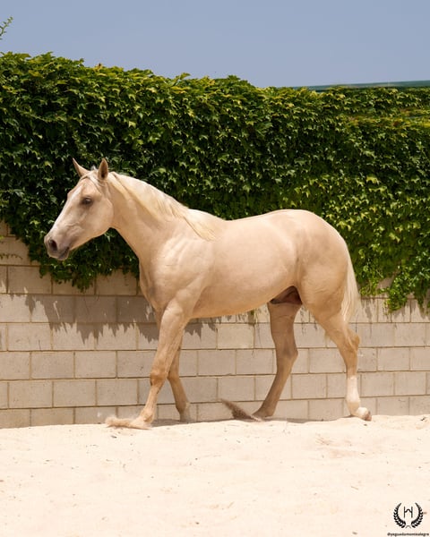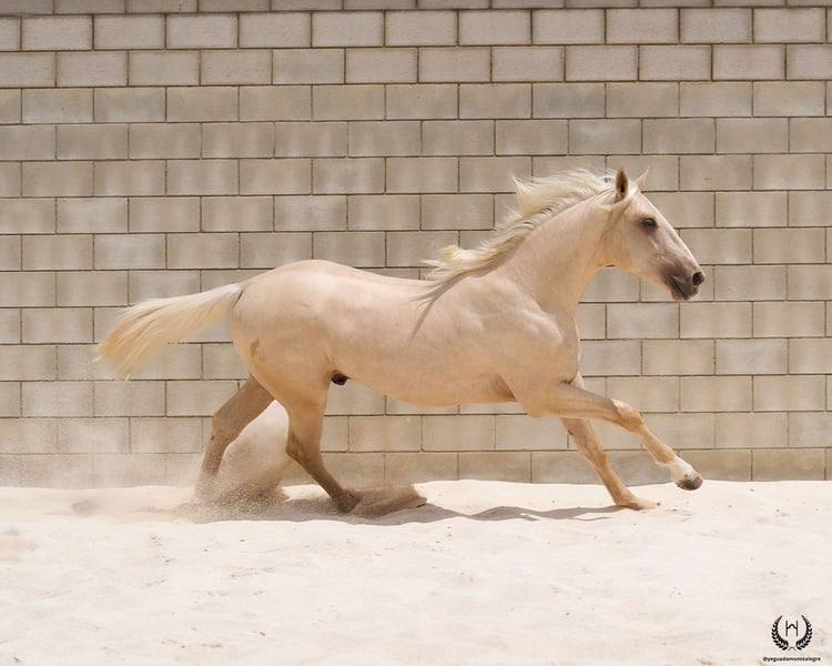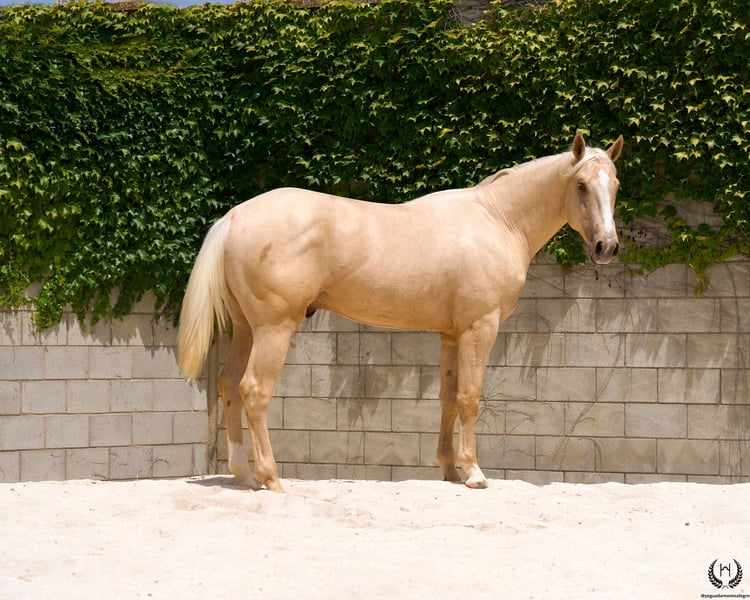 Are you looking for a horse that has it all? 💫 Amazónico Monte Alegre is the perfect fusion of beauty, athletic character, and elite genetics. 🐎 📅 14/04/2023 – 1.69 m – Gelding 📘 CDE (ANCADES) ▫️ Training level: Well-handled young horse, works on the lunge in all three gaits and on both reins. Impeccable stable manners: allows hoof trimming, loads and unloads from the trailer without difficulty. ▫️ Striking conformation: With a current height of 1.69 m, still developing and expected to reach 1.72 m at 6 years old. His brilliant metallic palomino coat, wide blaze with continuous stripe, and two white socks make him a true visual standout. Athletic and well-balanced build: correct limbs, strong topline, defined withers, sloping shoulders, and a powerful hindquarter. Ideal for show jumping and dressage. ▫️ Premium genetics: Son of QUEST OF GOLD IE (palomino CDE from the prestigious “Las Regueras” stud) and grandson of the legendary Quatercream IE x Quarterback. Top diluted Central European bloodlines. His maternal granddam adds the smoothness and elegance of the Polish warmblood EVA x MC Jonnas, from whom he inherits his unique ivory-toned palomino coat. Genetic coat color: “ee _ _ CRcr”. ▫️ Exemplary temperament: Gelding, gentle and well-balanced. Travels well by truck or van, integrates easily into new groups, and is respectful in daily handling. ▫️ Functional versatility: Big, elastic, and powerful gaits. Perfect for dressage, jumping, or leisure riding. A complete and harmonious horse with a true sporting spirit. ▫️ Health guaranteed: Any veterinary examination accepted. Transparency and trust are our core values. 📦 National and international transport available. Request a quote with no obligation! 📲 Contact: 🟢 WhatsApp: +34 639 522 420 🔴 Instagram: @yeguadamontealegre 📸 @almarevisual