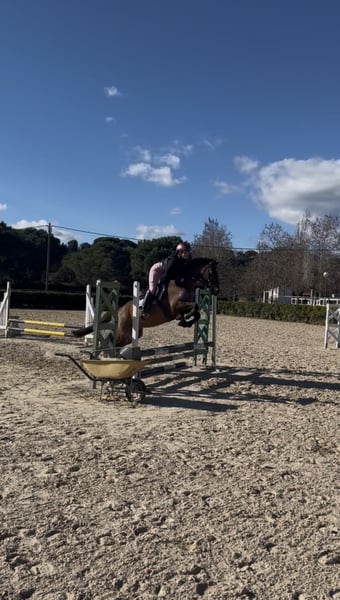 Chance to acquire a beautiful Spanish sport horse! This gelding was foaled in 2021, is chestnut in color, and stands approximately 15.6 hh. He is ideal for those seeking a horse with potential in show jumping and competitive riding. This horse combines beauty, character, and talent, making him an excellent choice for riders who want to progress in the world of equestrian sport. He is still somewhat hesitant when jumping, as he is just starting out in this discipline, but he has a lot of heart and learns very quickly. For more information and details, please do not hesitate to contact us.