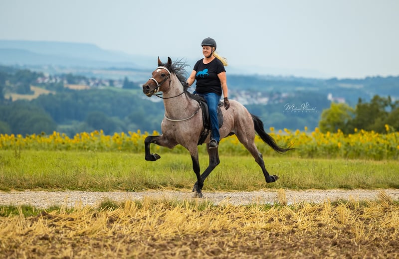 **The only material-tested stallion of the breed in Germany! Additionally, triple-tested and registered in the USA!** – Bay Roan – PSSM1 negative – WFFS1 negative – DMRT3 AA – Stallion Book 1 Rhineland Horse Studbook Speedracking Horses – Stallion Book 1 ZfdP Speedracking Horses – Stallion Book 1 as Aegidienberger Refinement USTA-bred stallion from the Pacer line with very fast ancestors on the pace track. Mud himself is registered as a tölter in RHBAA and SHOBA and is ridden in four gaits. He is a true tölting specialist and athlete. While searching for our own stallion, we stumbled upon a photo of him by chance. His expression immediately captivated us. After many conversations, photos, and videos, we decided to purchase him. We wanted a riding horse, not just a show horse. As with all our stallions, character is extremely important to us here as well. Without having met him in person beforehand, we trusted our gut feeling and were not disappointed. Mud is extremely friendly, people-oriented, and polite. Although he probably never lived in a herd in the USA, he interacts very socially with all horses here. Whether it’s the other stallions, geldings, or mares and foals, he enjoys his leisure time with his gelding buddy in the pasture, and it’s a joy to watch them play. He has very expressive basic gaits, a secure trot and canter, and above all, a very good, easy-to-ride tölt at high speed. In his first competition at the International German Gaited Horse Championship 2022, he immediately won the trotter 2-gait test and impressed with his expressive trot and rhythmical tölt. He also presented himself well in the sport tölt and placed 4th. We were especially proud of his unique character. Right next to the oval track with music, a very nervous horse in the neighboring stall, and many horses and commotion, he stood relaxed and calm in his box, as if he had never done anything else. This invaluable character was also demonstrated during his appearances at the Pferd International fair 2024 in Munich and at every subsequent event. Coolness combined with willingness to perform – a horse for every situation. From family horse to show horse – he never lets you down. **MATERIAL TESTING** As part of the Aegidienberger Day, Mud was the first Speedracking Horse in Germany to complete the ridden material test with the rating "recommended for breeding." Here are the individual scores: Interior 8.5 – Conformation 8.5 – Foundation 8.0 – Tölt 8.8. “9-year-old stallion with a lot of expressive tölt, friendly and cooperative.” Mud covered his first mares in Germany in 2021 and has a 100% success rate. Since 2022, he has also been available for outside mares. He is homozygous for DMRT3 (Gait keeper gene, tölt gene), meaning all his offspring will have a predisposition for tölt. His previous foals from a variety of mares all have good basic gaits and a lot of tölt with very friendly characters. **Breeding Dates 2026** April – August at Gangpferde von Hjóna www.hjona.de Hand covering Breeding fee 1000 Euros Please inquire about breeding conditions at the breeding station.