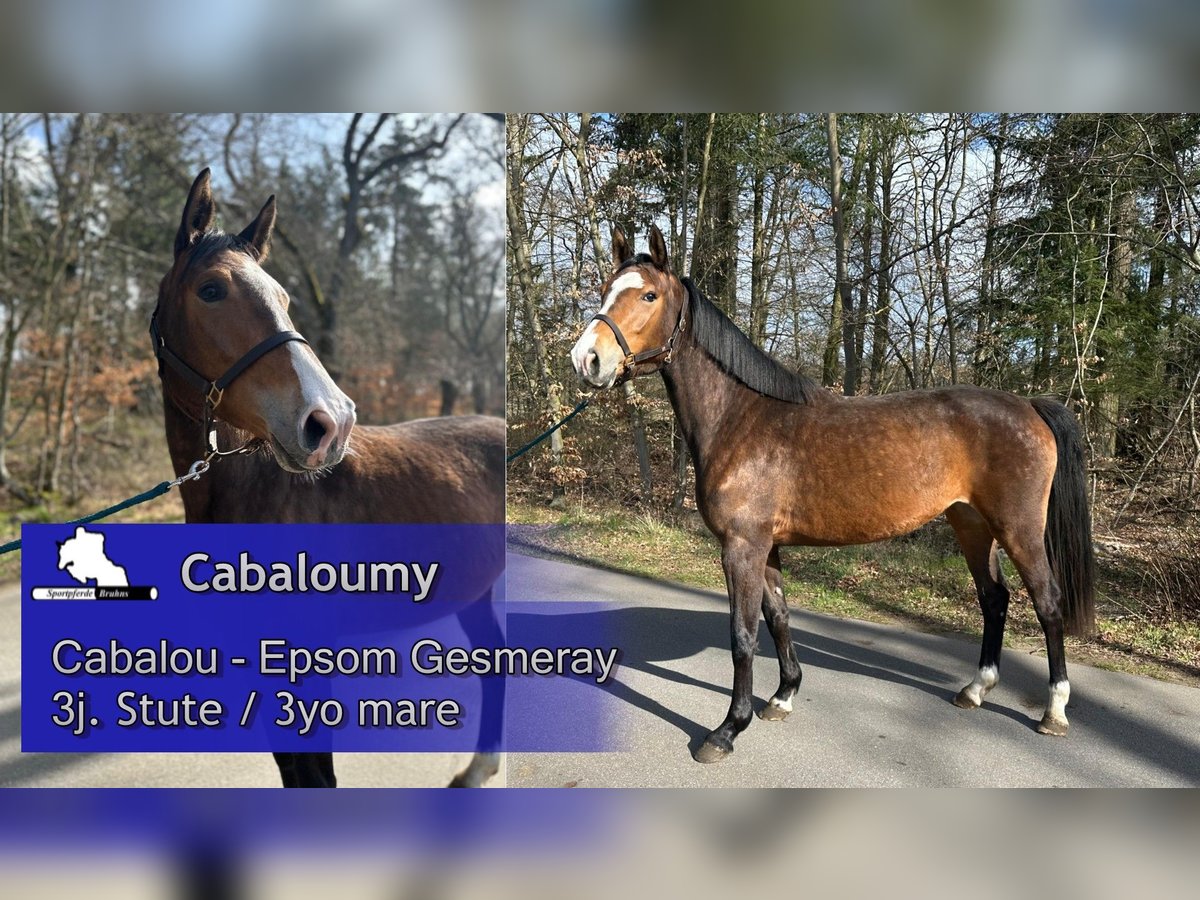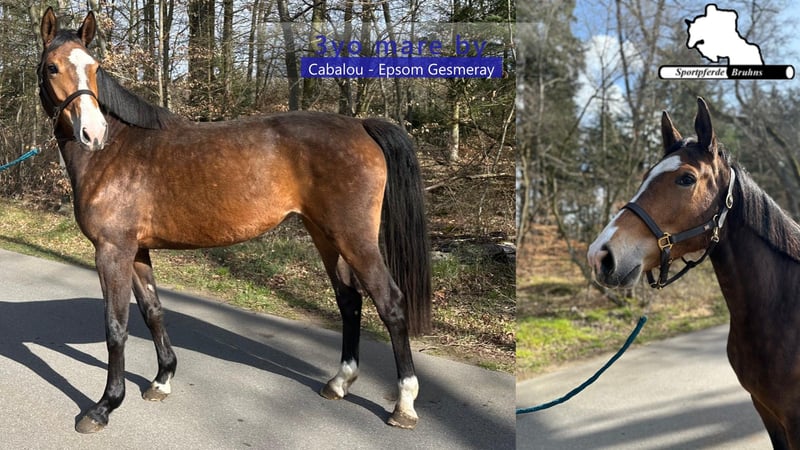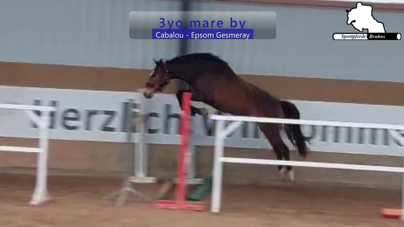 Wir bieten hier eine 3jährige typvolle und charmante Stute aus einem exzellenten Mutterstamm. Sie ist bisher noch uns geritten. beim Freispringen zeigt sie sich talentiert, leichtfüßig, vorsichtig sowie mit guten Reflexen und Übersicht am Sprung . Sie ist aus der direkten Vollschwester zu unserem Erfolgspferd und Vererber Gepsom, die selbst nur züchtertisch genutzt wurde. Vater Cabalu trâgt das begehrte Carthagoblut durch Colman in sich und war selbst altergemäß bis Springpferde M erfolgreich. Somit offenbaren wir hier einen hoffnungsvollen Aspiranten für Sport und Zucht.